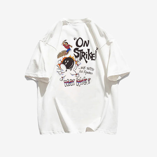 "Casual retro high street cartoon boy bowling" T-shirt