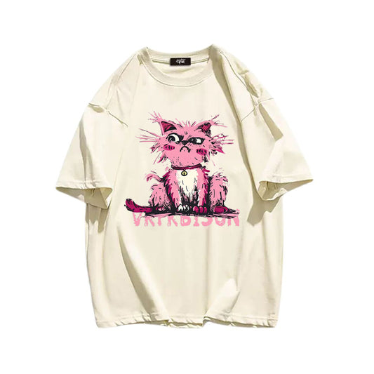 "Casual high street retro cartoon funny graffiti kitten" T-shirt