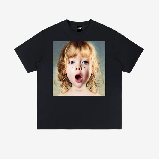 “Urban style little girl surprised character print” T-shirt