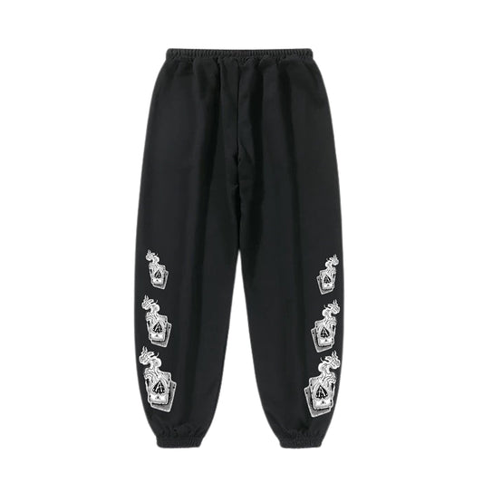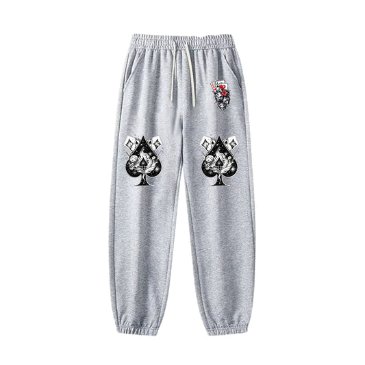 "Casual high street retro burning poker cards cartoon" Sweatpants