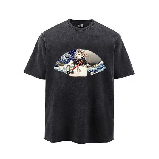 “Ukiyoe famous painting Kanagawa Japanese samurai cat” T-shirt
