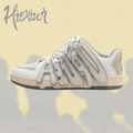 Enhance your wardrobe with the Hipkiwi Urban High Street Coffee Stripe Couple Casual Sneakers. These shoes blend sophistication and style, with a unique twist from the contrasting rolled wheat ear pattern. Crafted for luxury, the attractive and fashionable sneaker will leave you making a statement.