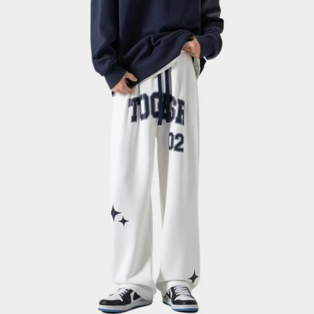 The All-Match Letter Sweatpants feature a unique design with a bold letter print, adding a touch of personality to your outfit. The elastic waistband and drawstring ensure a comfortable and adjustable fit, while the tapered leg design adds a modern and sleek look.