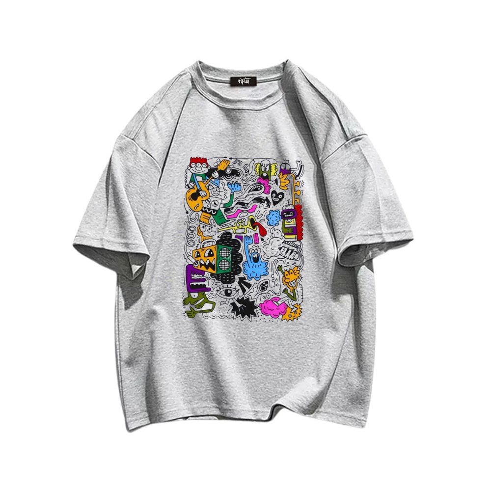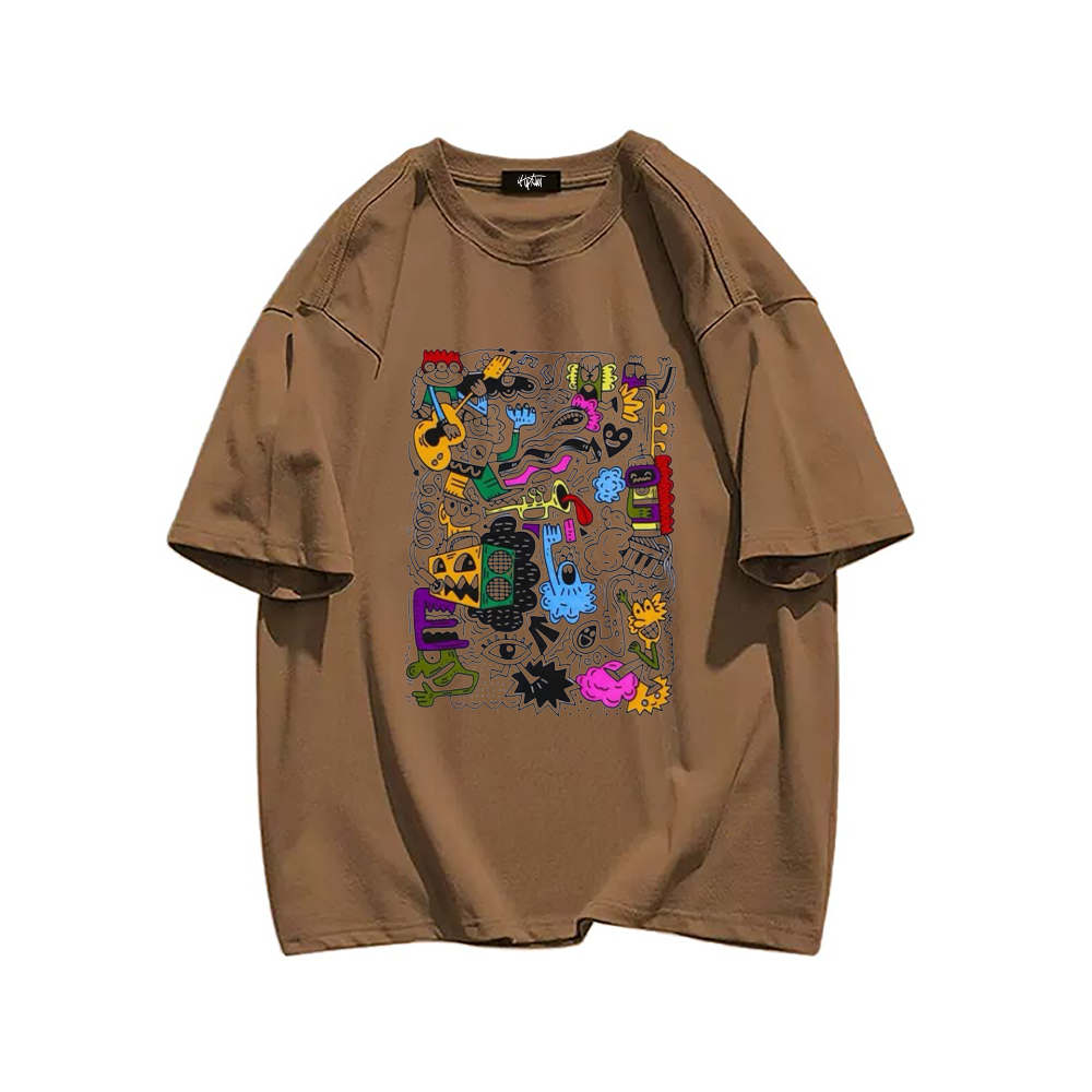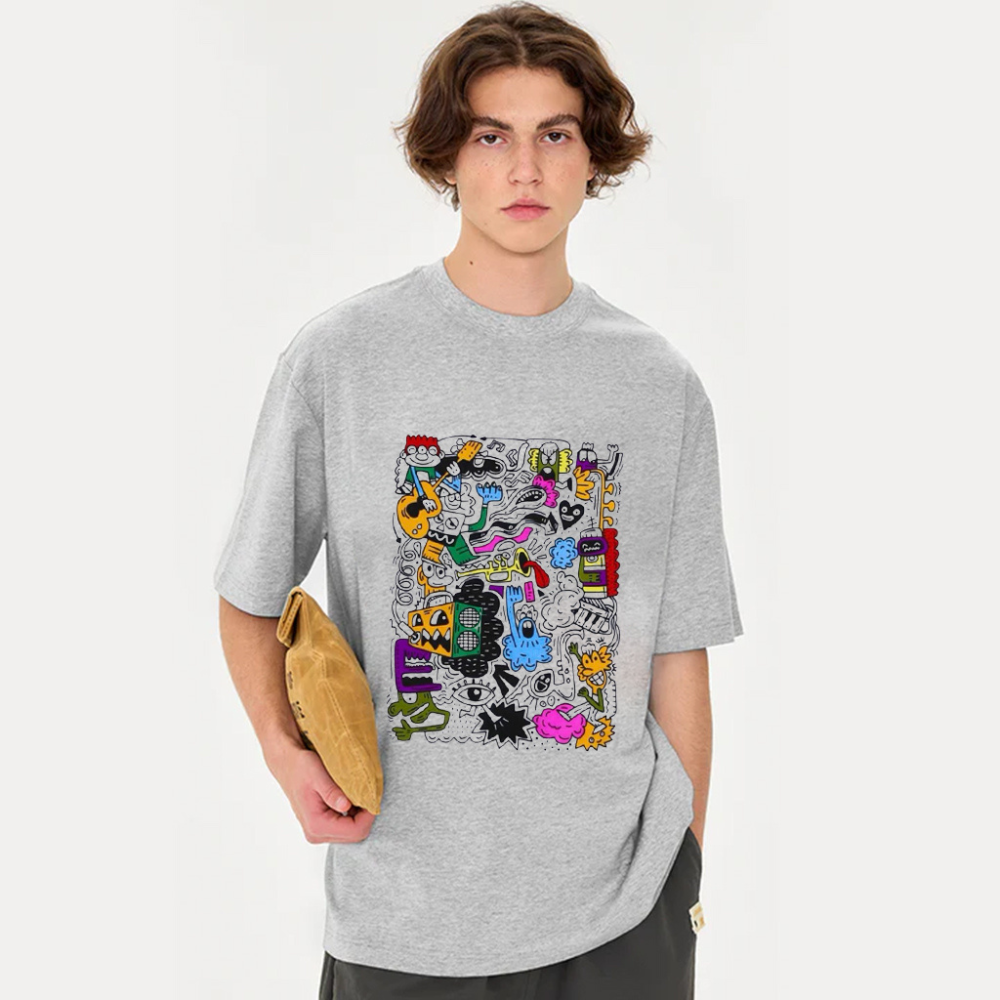 The vibrant colors and intricate details of the doodle make this t-shirt stand out from the rest. It's perfect for casual outings, concerts, or even as a statement piece for your everyday wardrobe. The soft fabric and relaxed fit ensure that you'll feel comfortable and confident while wearing it.