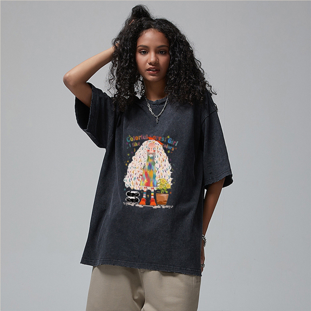 “Urban cartoon colorful flower girl niche design” T-shirt