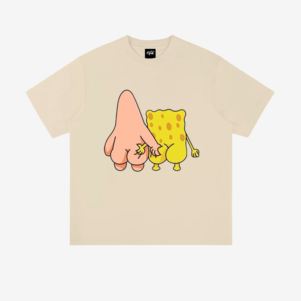 “Urban cartoon sponge and starfish pinching butt print” T-shirt