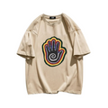 We present our newest addition to our summer trend collection - the American Graffiti Palm Print T-Shirt. This unique and eye-catching T-shirt features a retro cartoon design that will make you stand out in any crowd. Made from premium quality materials, this T-shirt is not only stylish but also comfortable to wear.