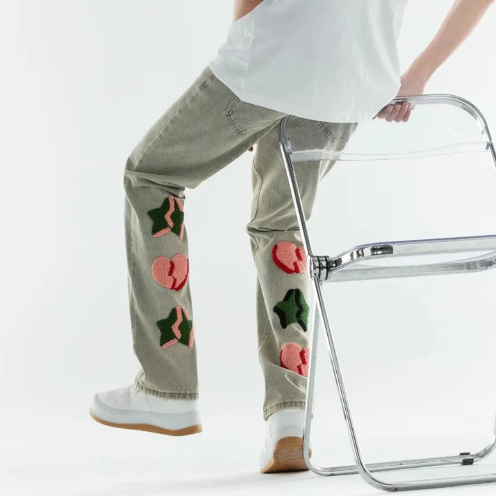 "American Heart Flocked Straight Leg" Jeans