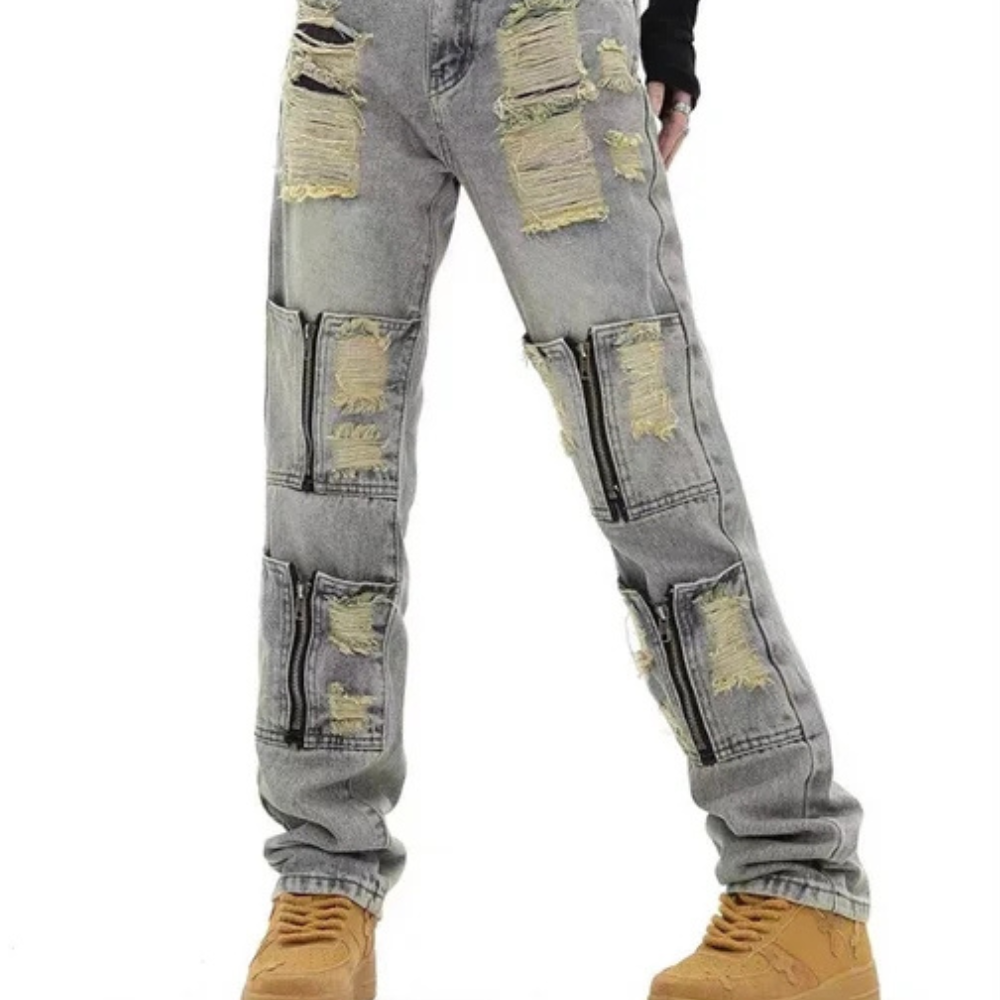 Introducing the latest trend in denim fashion - the American High Street Distressed Jeans. These jeans are the perfect combination of edgy and chic, making them a must-have for any fashion-forward individual. Crafted with high-quality materials, these jeans are designed to provide both comfort and style.