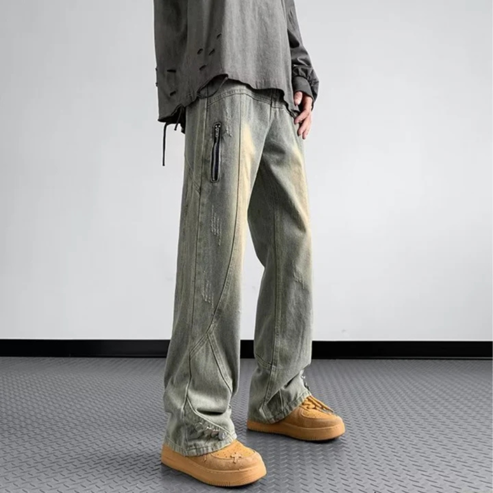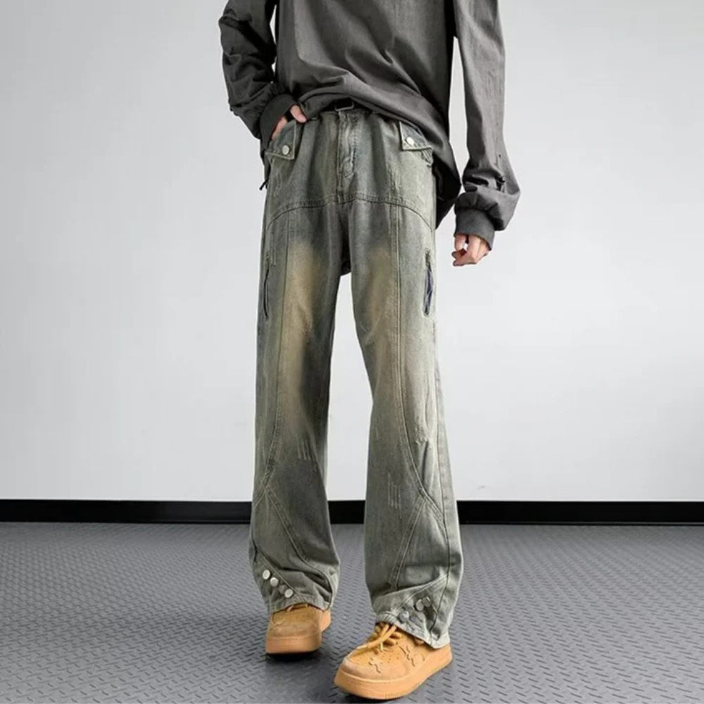 The distressed detailing adds a touch of ruggedness to the classic high street style, giving these jeans a unique and eye-catching look. The distressed patches are strategically placed to create a flattering silhouette, making these jeans suitable for any body type.