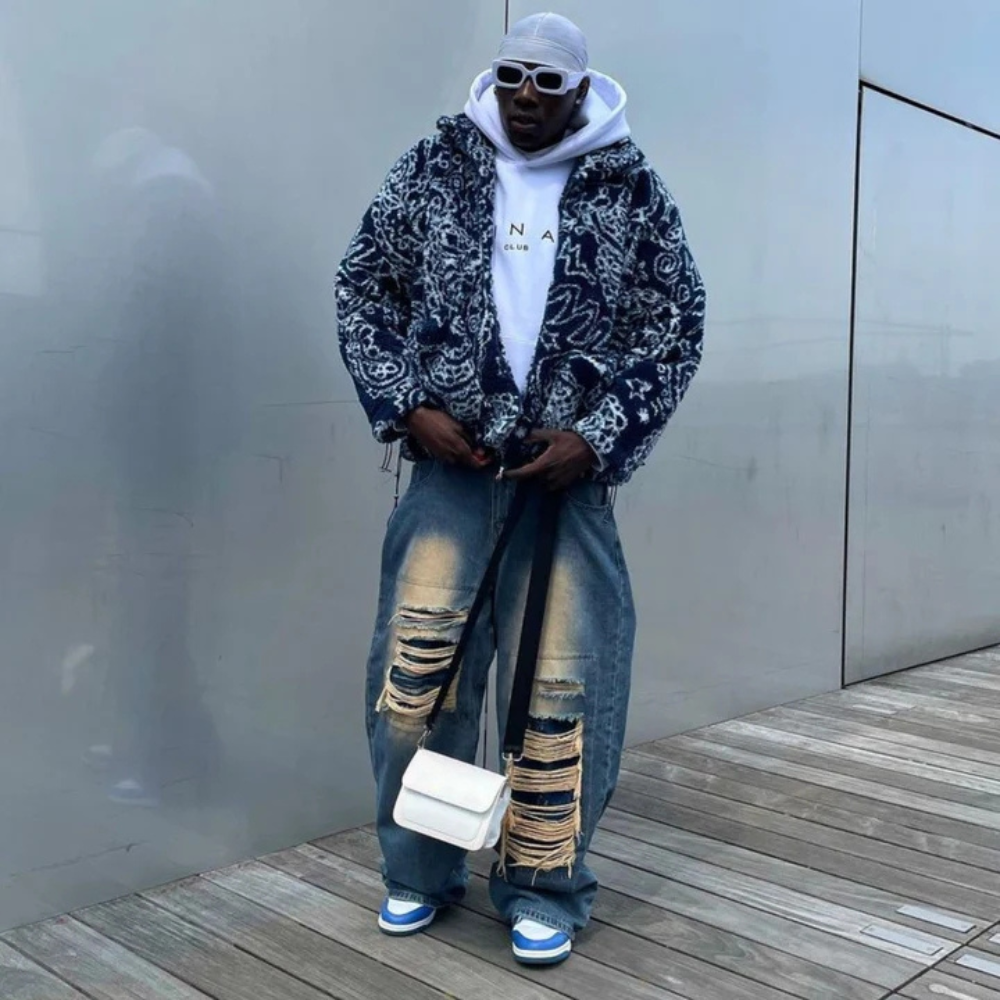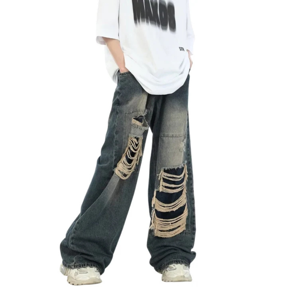 Upgrade your denim game with our American High Street Loose Ripped Jeans. These jeans are the perfect combination of style and comfort, making them a must-have for any fashion-forward individual. The loose fit allows for easy movement, while the ripped detailing adds a touch of edginess to your look.