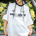 The monochrome color scheme adds a touch of sophistication to the overall design, making it perfect for any occasion. The American letter design adds a trendy and modern touch, making this t-shirt a must-have for any fashion-forward individual.