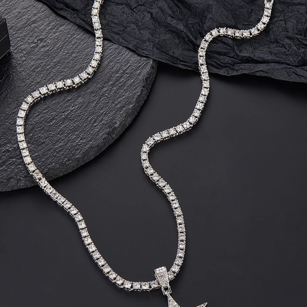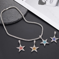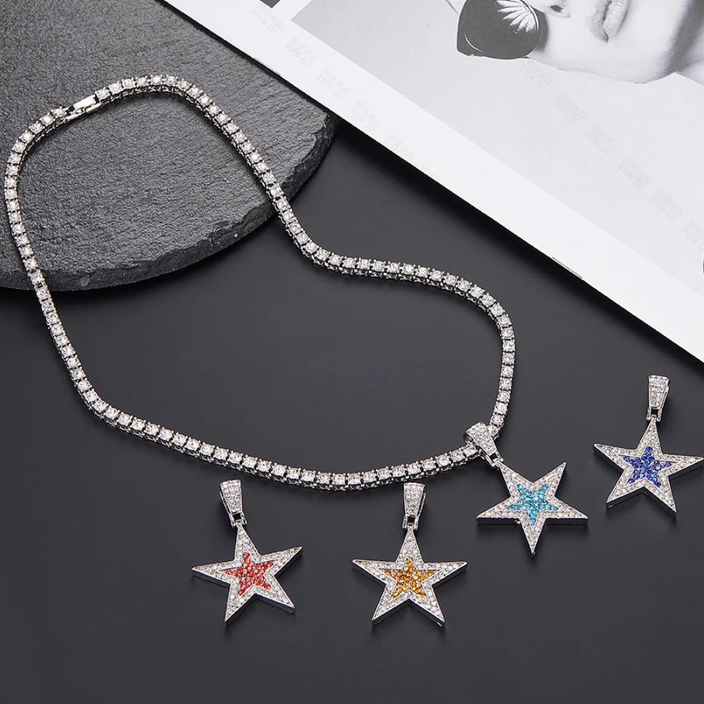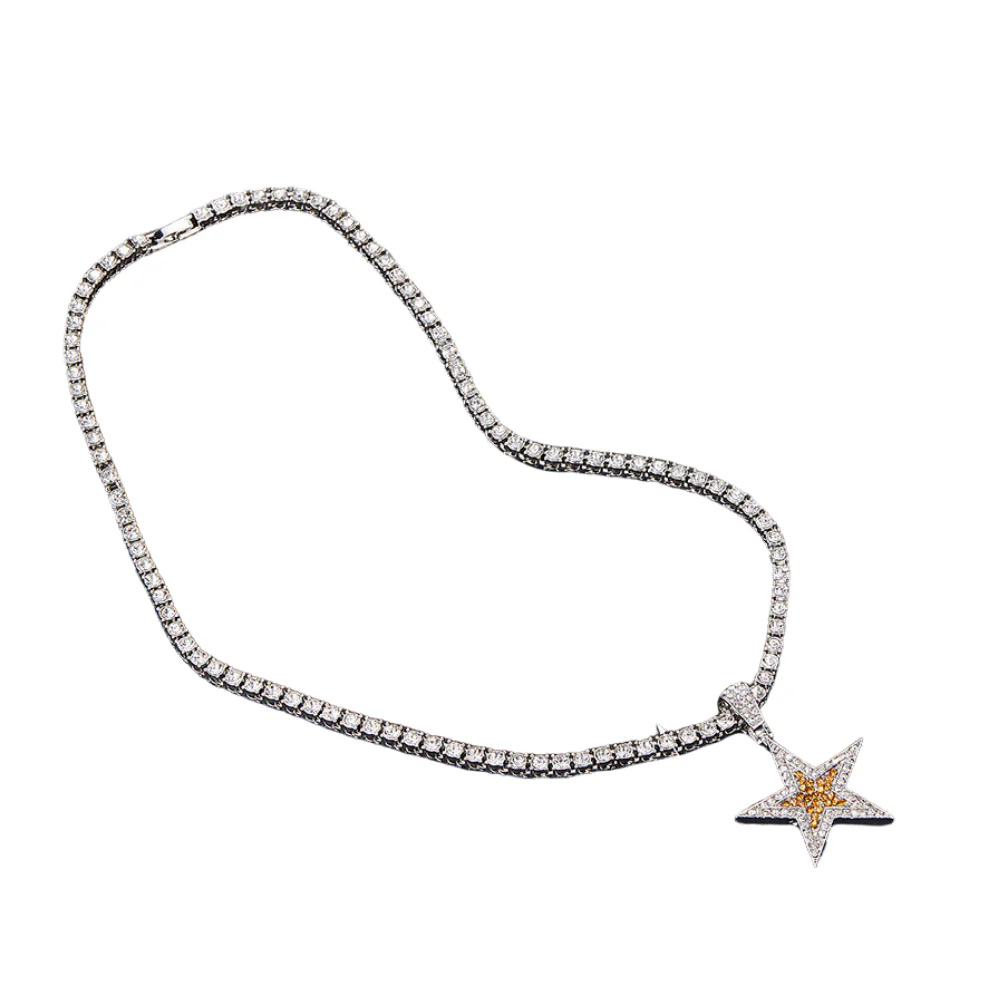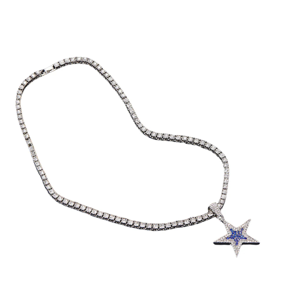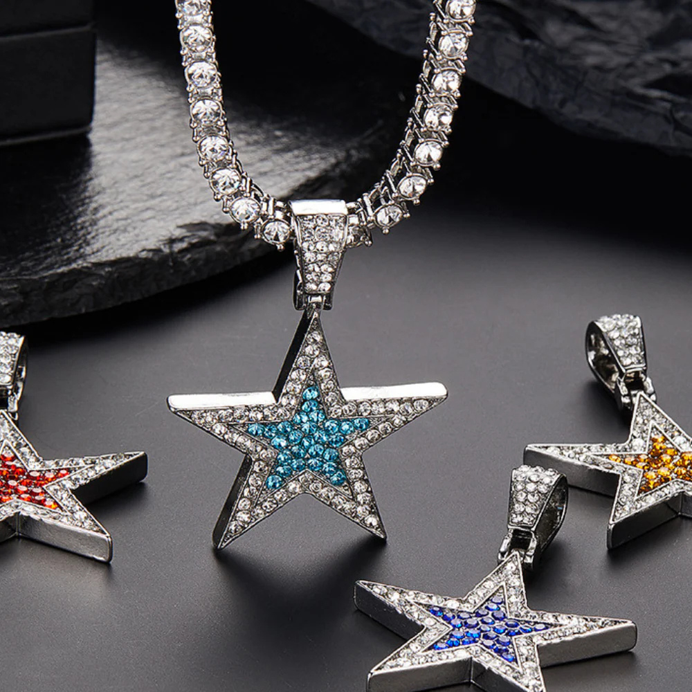 Transform into a symbol of American style with our pentagram necklace. Designed with intricate attention to detail, this necklace exudes luxury and exclusivity. Made with the finest materials, it is the perfect accessory for the sophisticated and stylish individual. Elevate your fashion game with our American pentagram necklace.
