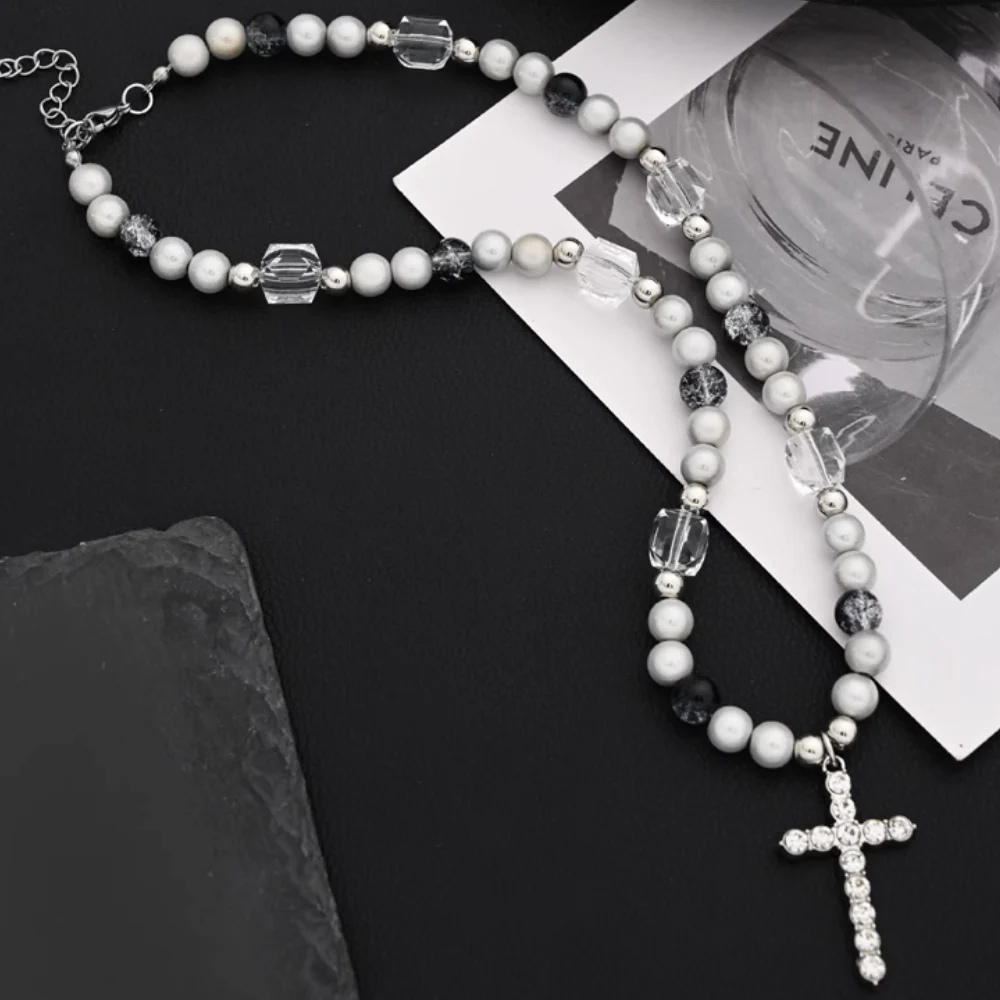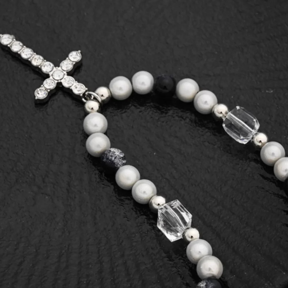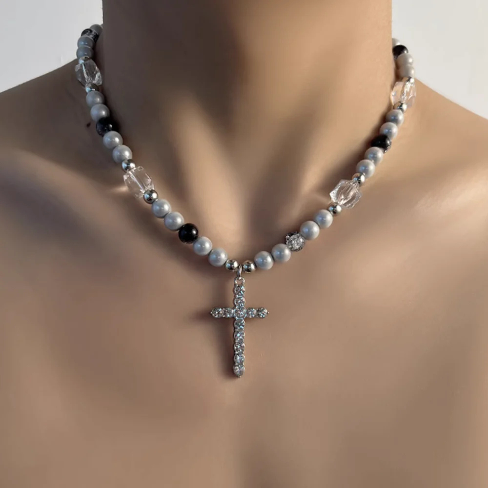 Transform your look with our American Reflective Pearl Cross Necklace. Featuring a stunning pearl cross pendant, this necklace exudes sophistication and elegance. The reflective nature of the pearls adds a touch of luxury, making it the perfect statement piece for any occasion. Elevate your style with this exclusive necklace.