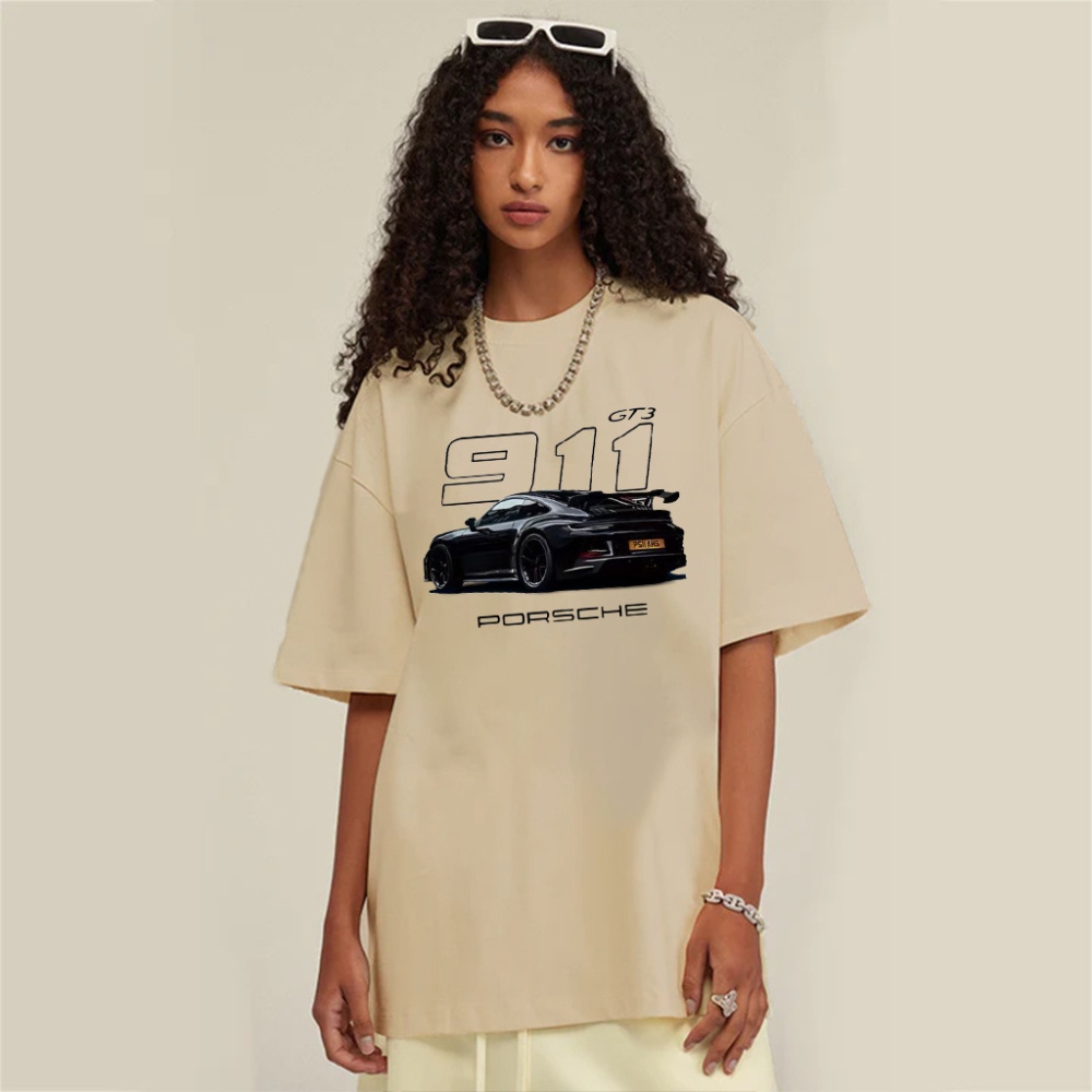 The standout feature of this t-shirt is the super cool print of a retro car 911, giving it a unique and trendy look. The solid color adds to its urban style, making it a must-have for any fashion-forward individual.