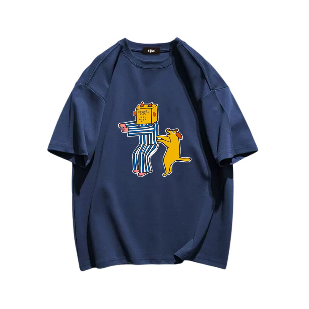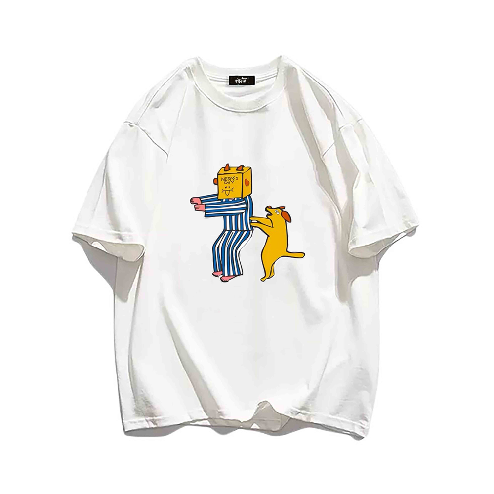 The retro cartoon design adds a touch of nostalgia and playfulness to your outfit, making it perfect for any casual occasion. The vibrant colors and bold graphics make this T-shirt a must-have for any fashion-forward individual.