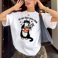 Inspired by Japanese pop culture, this T-shirt is perfect for those who love to stand out and make a statement. The vibrant colors and detailed print make it a must-have for any fashion-forward individual. Whether you're a cat lover or simply appreciate creative designs, this T-shirt is sure to become a staple in your wardrobe.