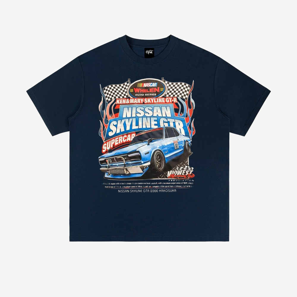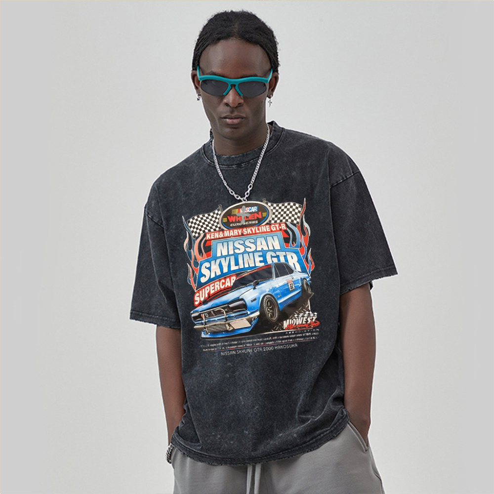 Get ready to rev up your style with our American SKYLINEGR racing print T-shirt. Made from 100% cotton, this T-shirt is not only comfortable but also durable. The crew neckline adds a classic touch while the super soft fabric ensures maximum comfort. The loose fit allows for easy movement, making it perfect for any casual occasion. The solid color and regular fit give it a sleek and urban look, making it a must-have for any car enthusiast or fashion-forward individual.