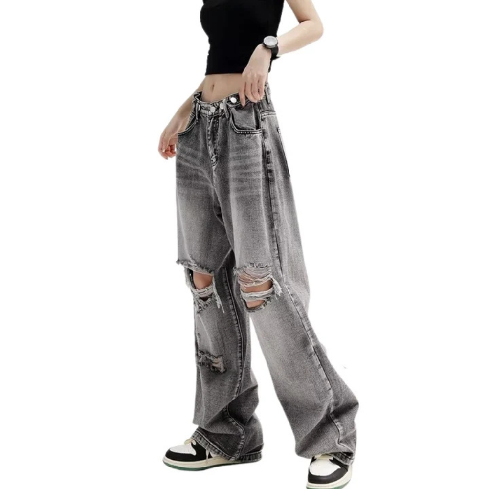 Introducing our latest addition to the"American Street Ripped Straight" Jeans.These jeans are designed to elevate your street style with their edgy and trendy look. Made from high-quality denim, these jeans are durable and comfortable to wear all day long.