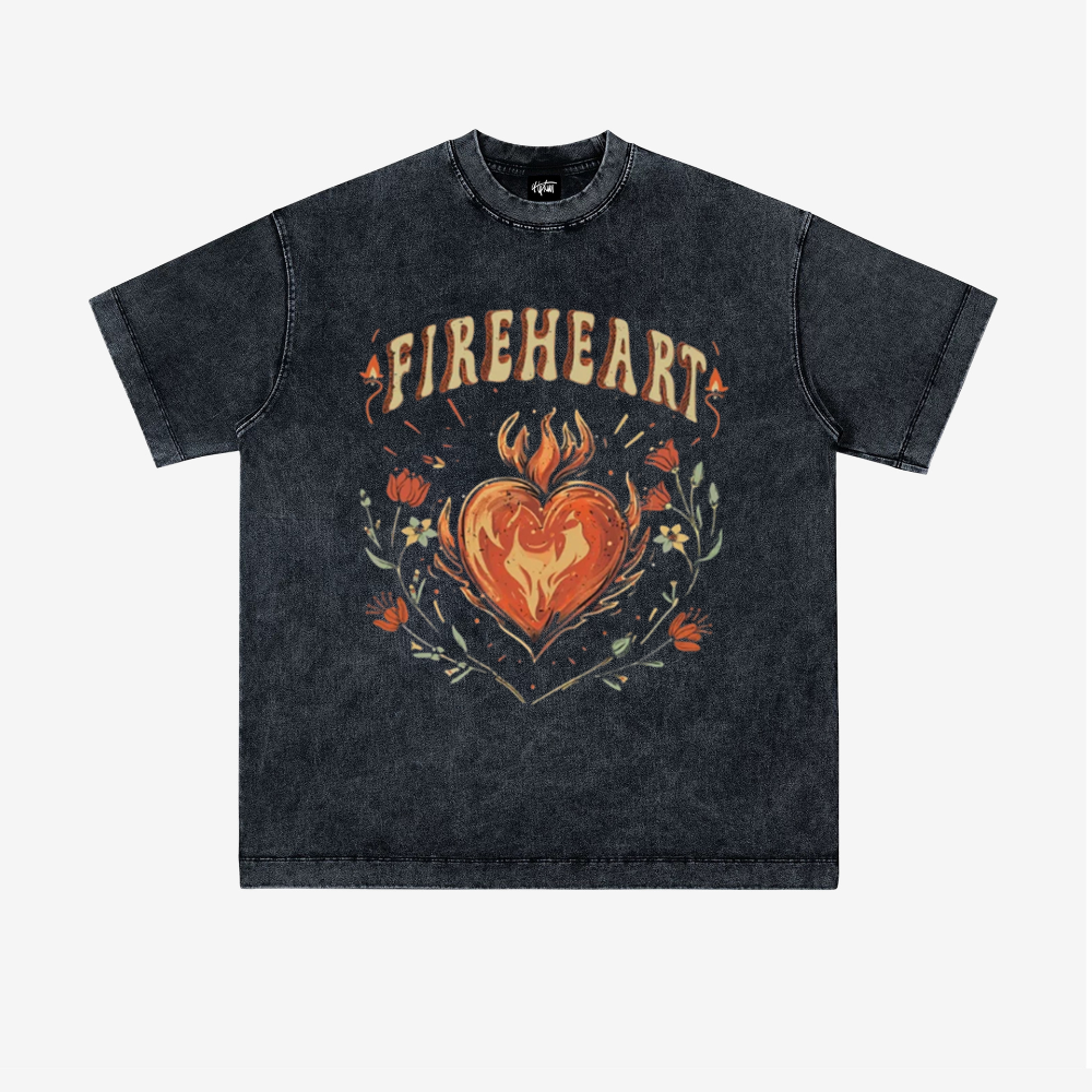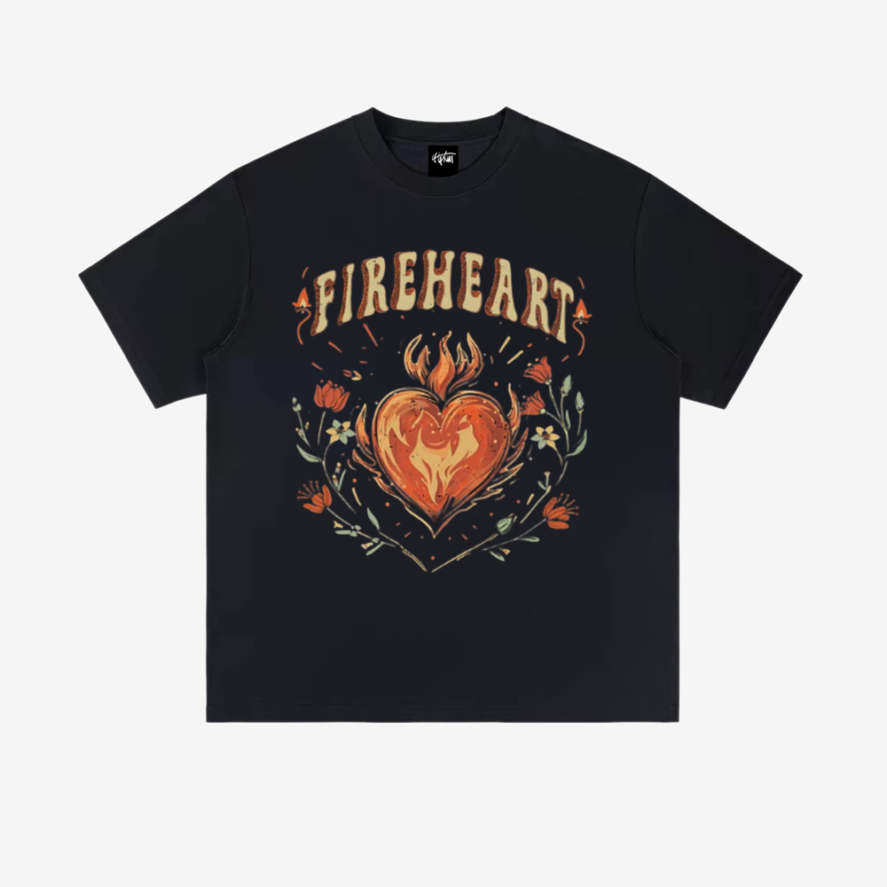 “Style trendy hand-painted flame heart flower pattern print” T-shirt