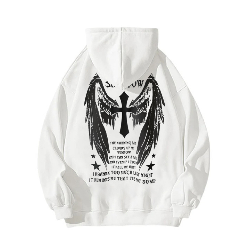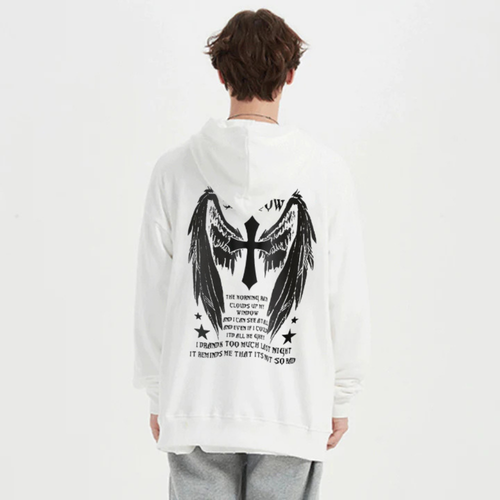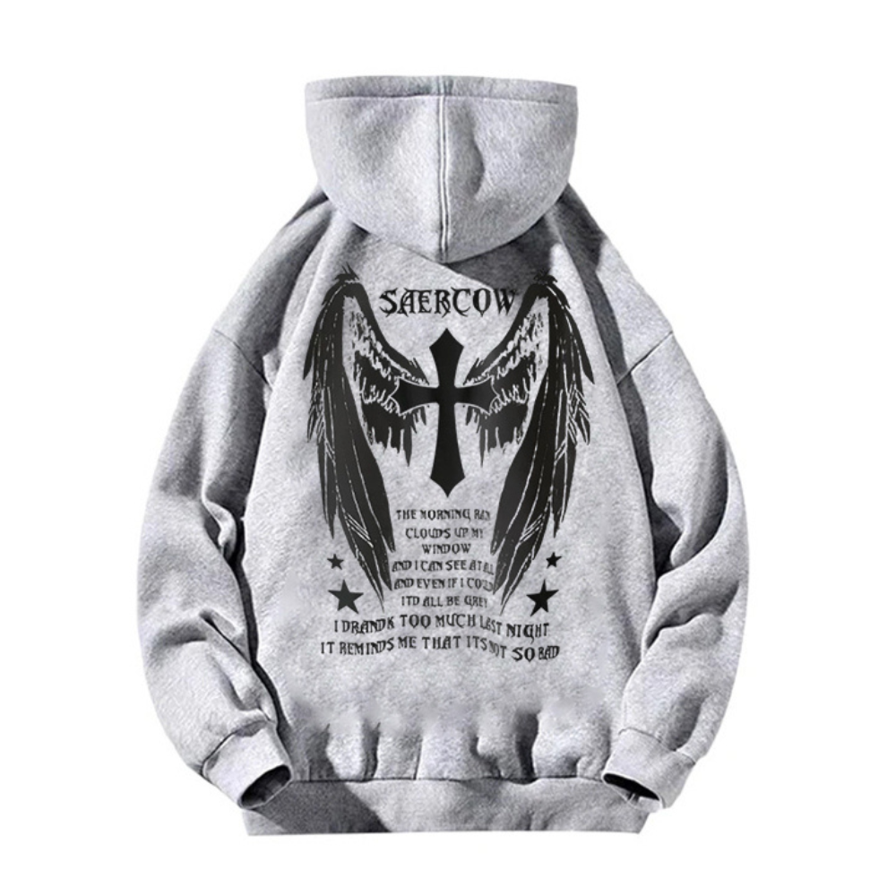 The dark niche angel wings print adds a unique and eye-catching touch to the overall design, making it a must-have for any fashion-forward individual.