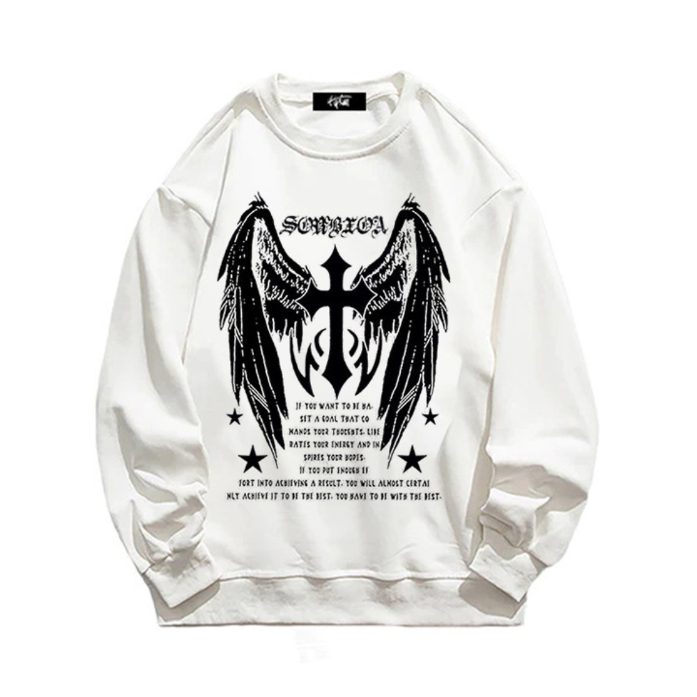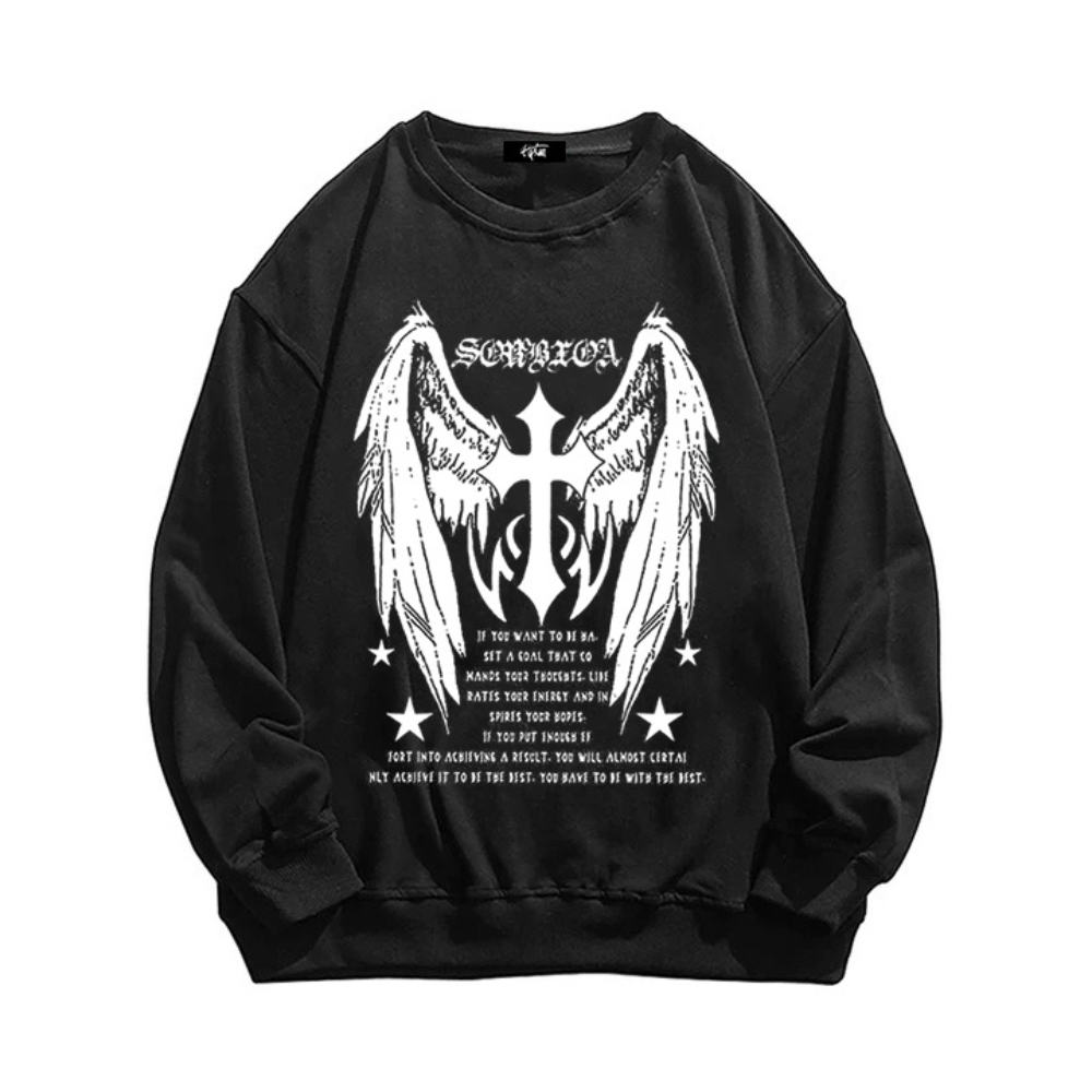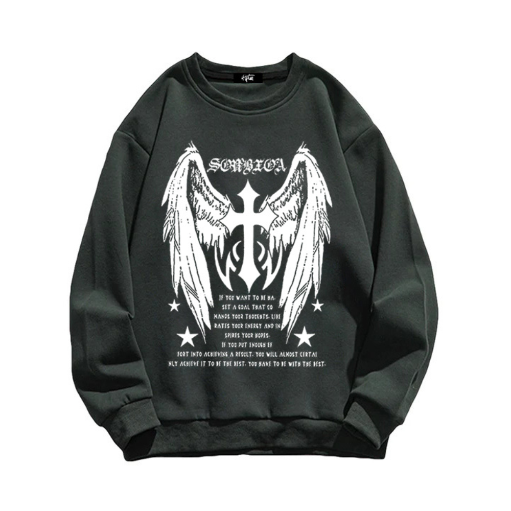 The dark color palette adds a touch of mystery and sophistication to the overall design, making it perfect for any occasion. Whether you're going for a casual day out or a night out with friends, this sweatshirt will elevate your style and make you stand out from the crowd.