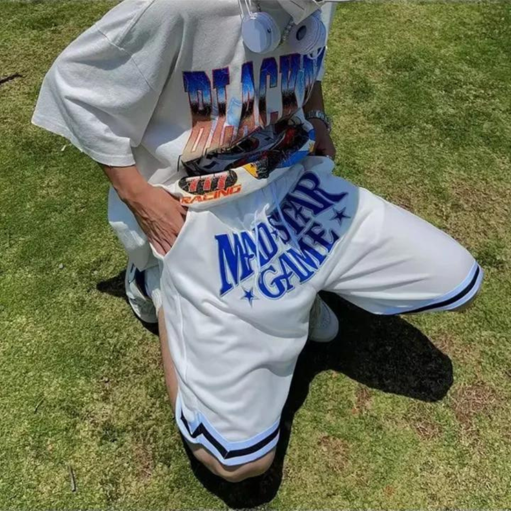 The trendy letter design adds a unique touch to these shorts, making them stand out from the crowd. The elastic waistband provides a comfortable and adjustable fit, while the loose fit allows for easy movement. These shorts are available in a variety of sizes, making them suitable for both men and women.