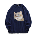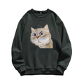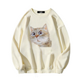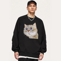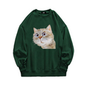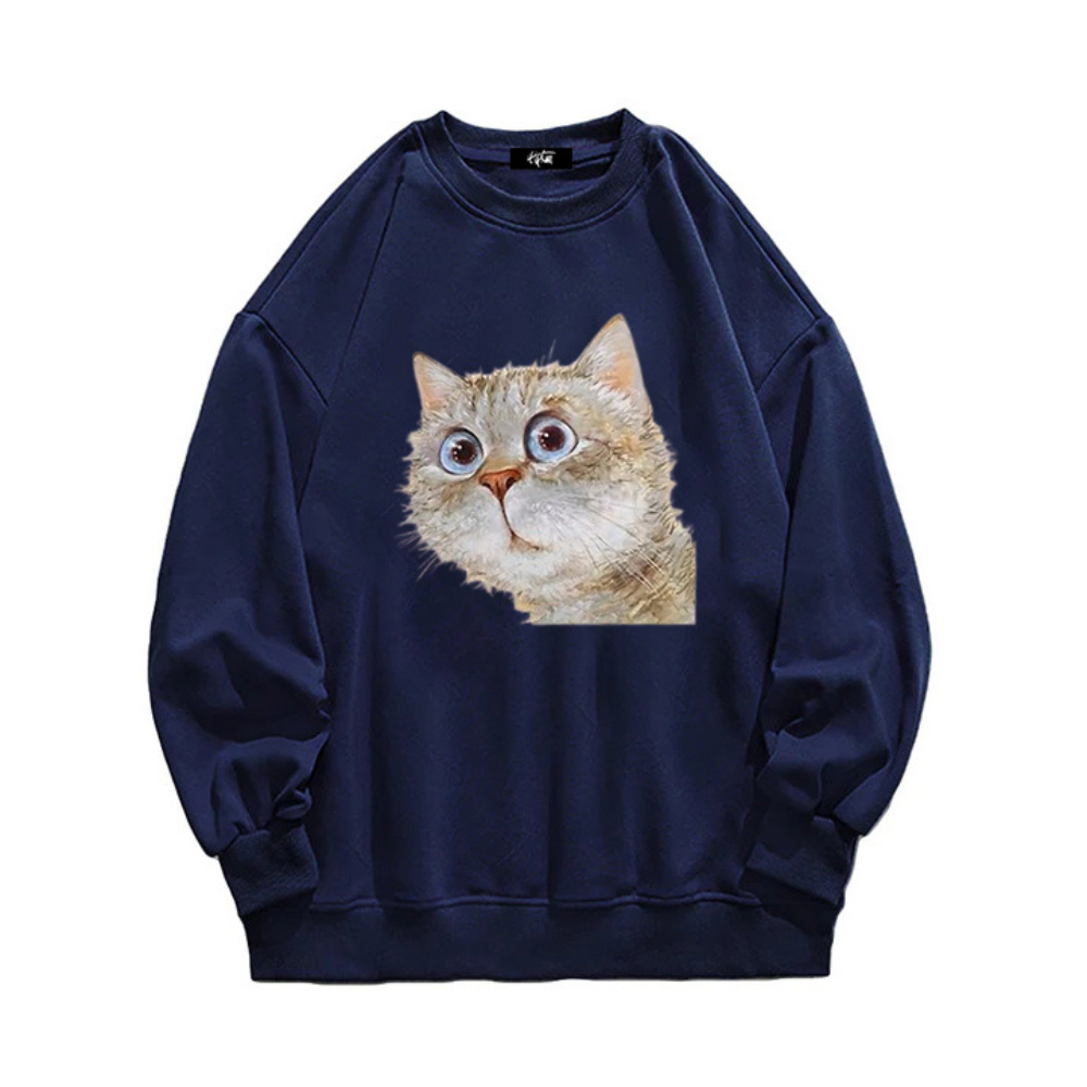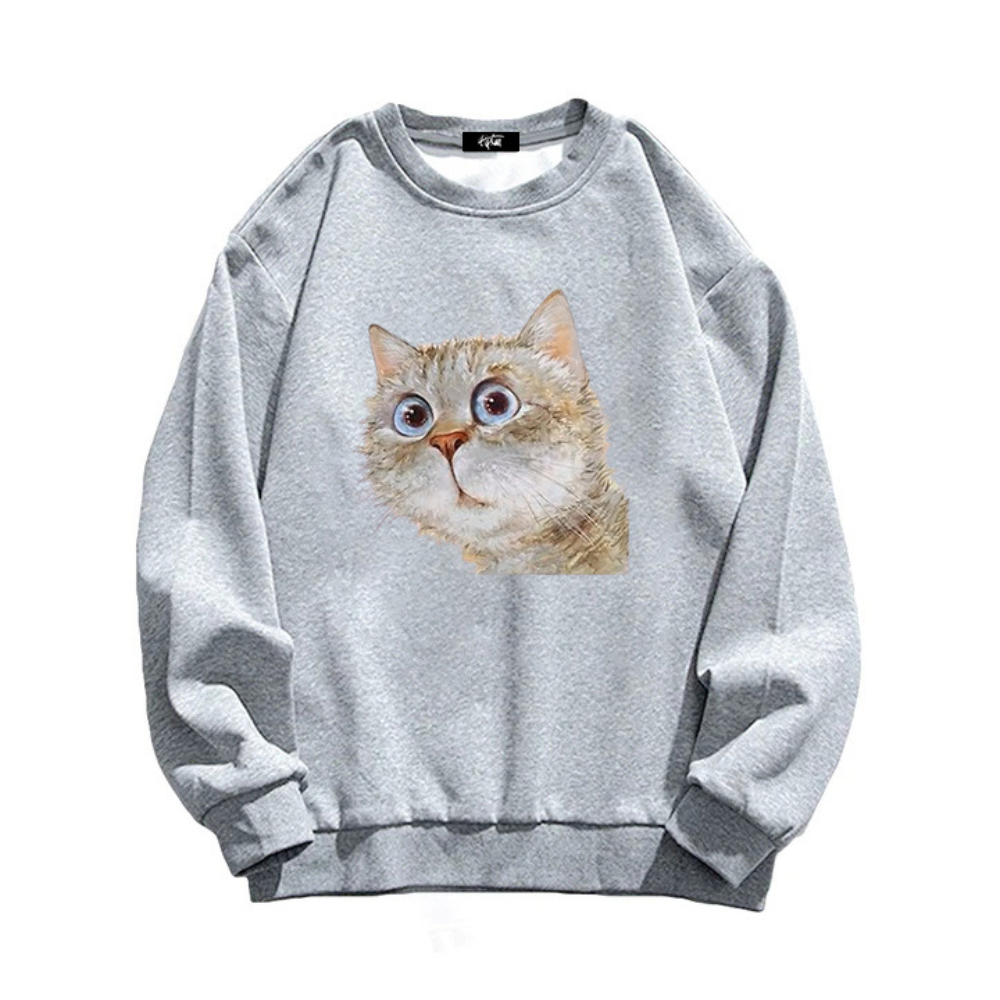 The standout feature of this sweatshirt is the unique cat print, featuring a surprised expression that is sure to make a statement. The print is bold and eye-catching, making it a great conversation starter. Whether you're running errands, lounging at home, or heading out with friends, this sweatshirt is the perfect choice for any occasion.