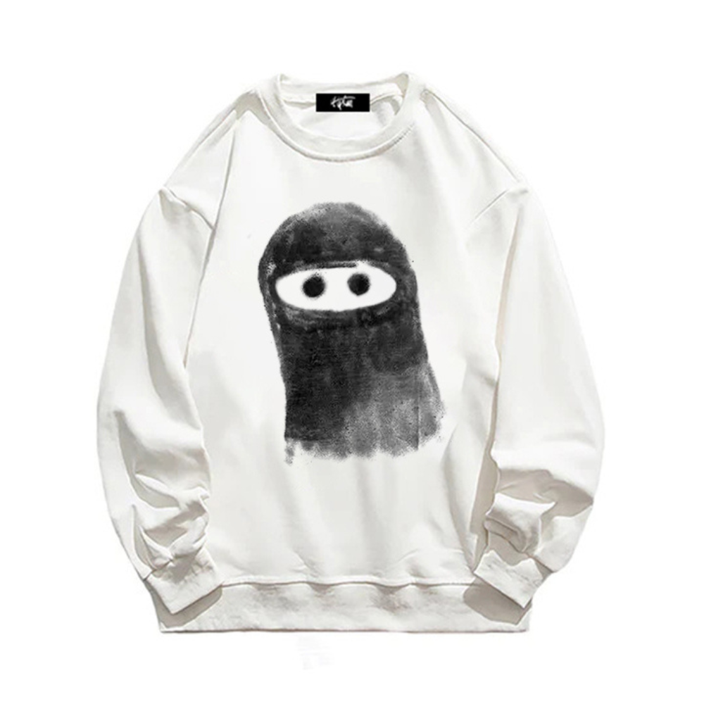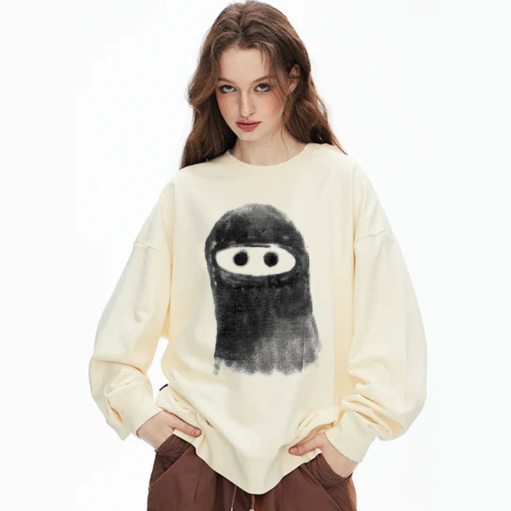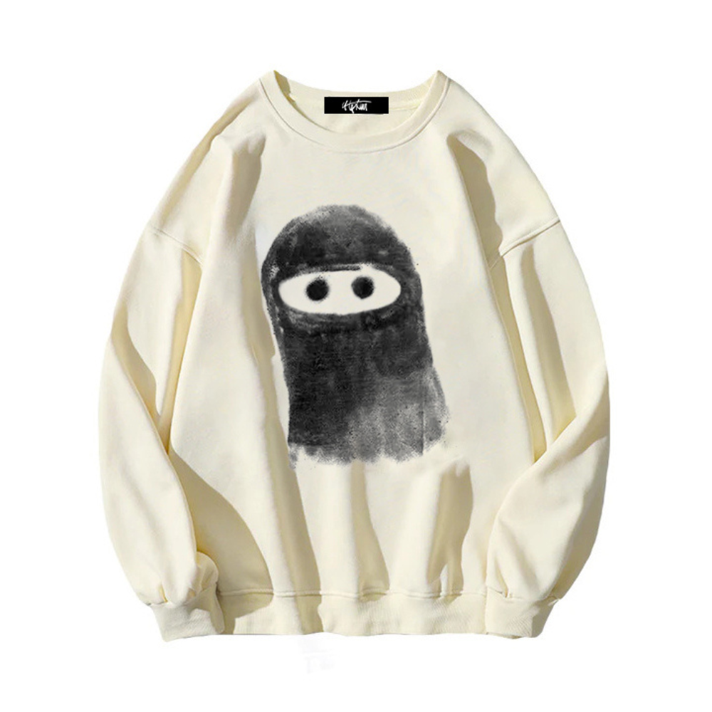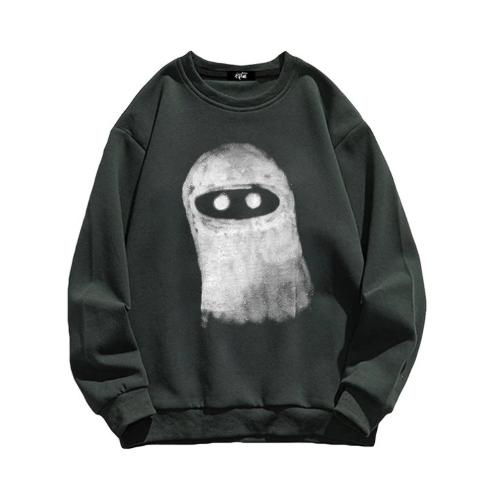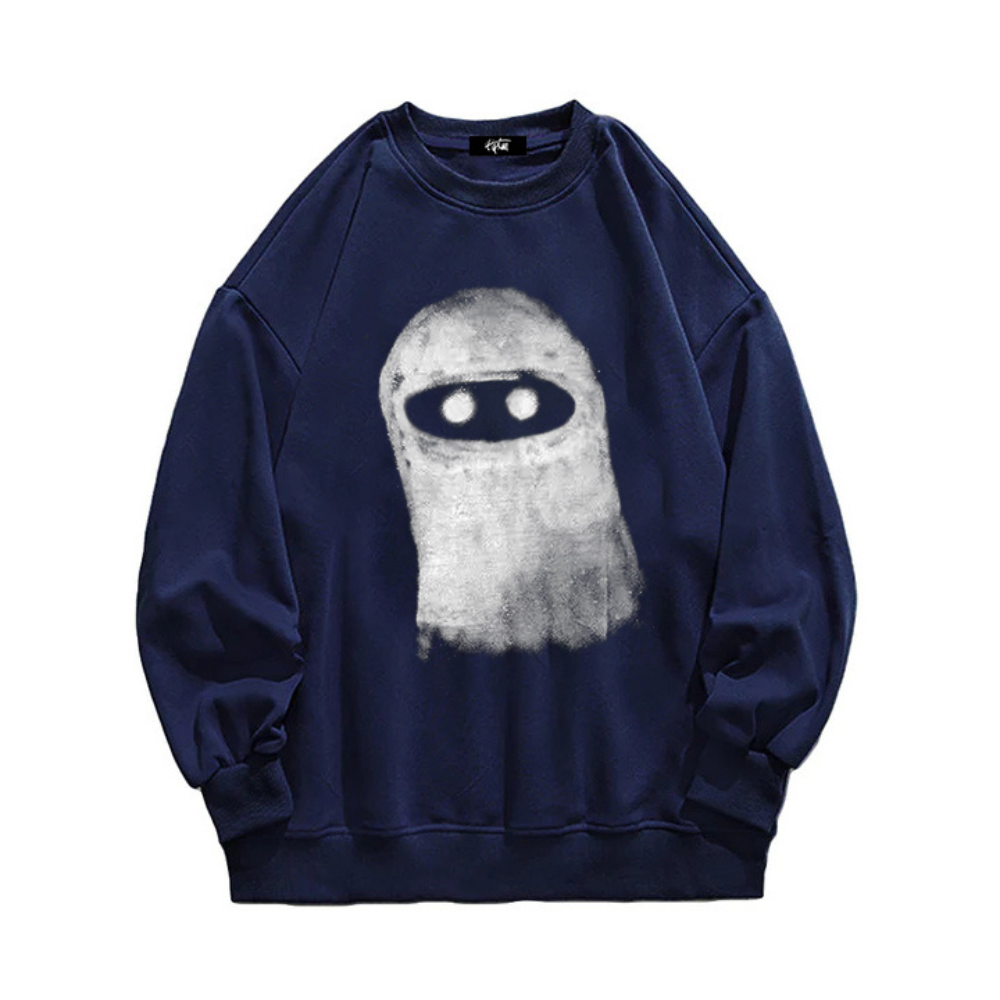 Perfect for any casual occasion, this sweatshirt can be dressed up or down to suit your personal style. The soft fabric and relaxed fit make it the perfect choice for a cozy night in or a day out with friends. The ghost print adds a playful and edgy element to the overall look, making it a statement piece in your wardrobe.