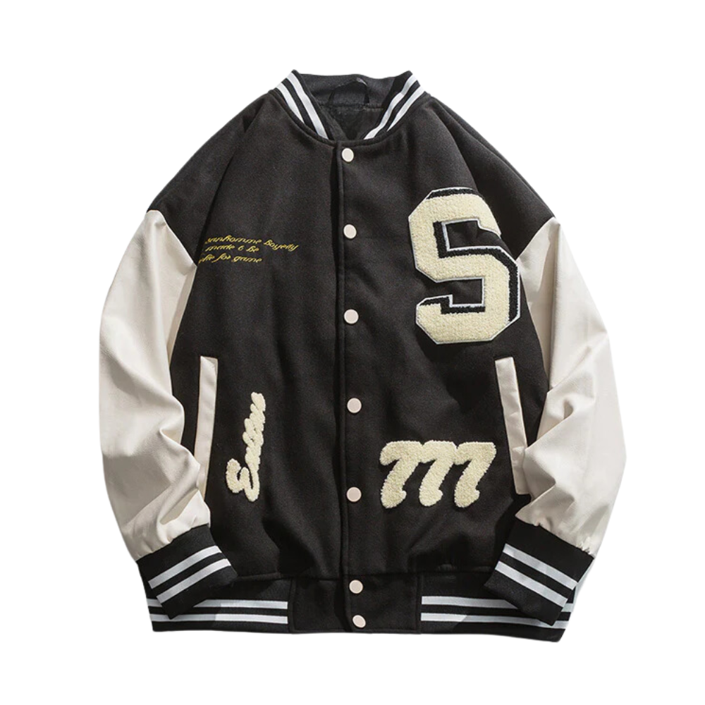 Crafted with high-quality materials, this jacket features intricate embroidery detailing on the front and back, adding a touch of elegance to the classic varsity design. The bold colors and bold lettering make a statement, while the soft fabric ensures comfort and warmth.
