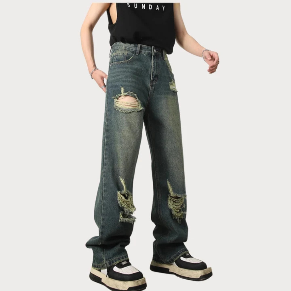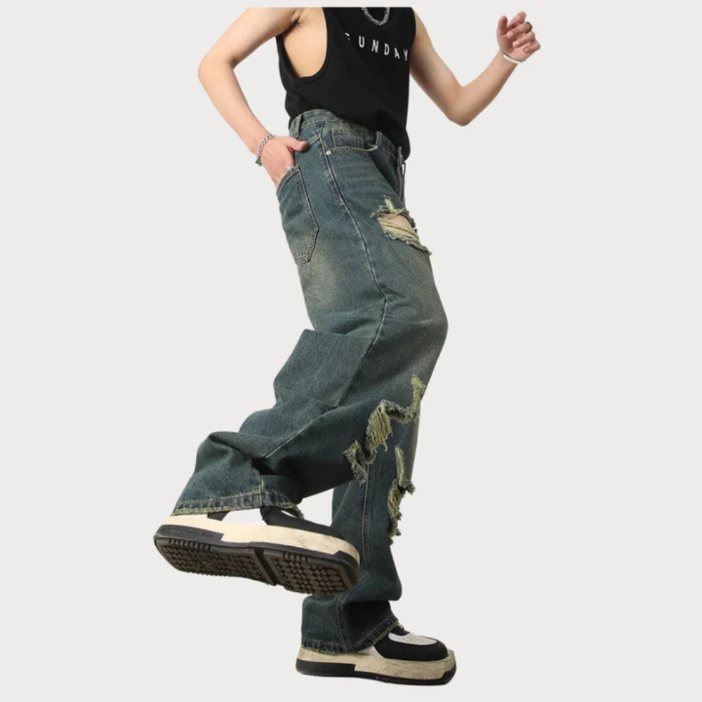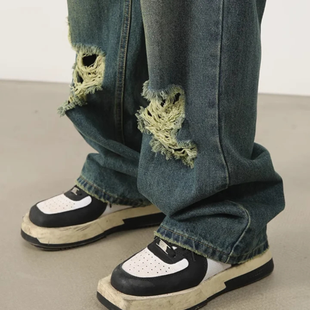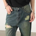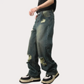 These jeans are versatile and can be dressed up or down, making them suitable for any occasion. The loose fit allows for easy movement, while the ripped detailing adds a touch of attitude to your outfit. The classic American vintage style adds a timeless appeal to these jeans, making them a staple in your wardrobe.