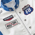 This "Badge Leather Racing" jacket is a must-have for any fashion-forward individual. Its sleek and stylish design is perfect for both men and women, making it a versatile addition to any wardrobe. Made from high-quality leather, this jacket is not only durable but also provides excellent protection against the elements.