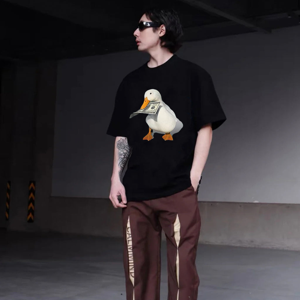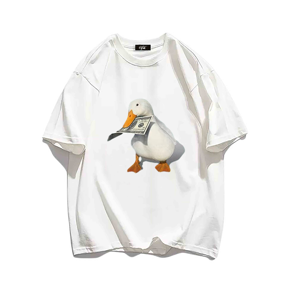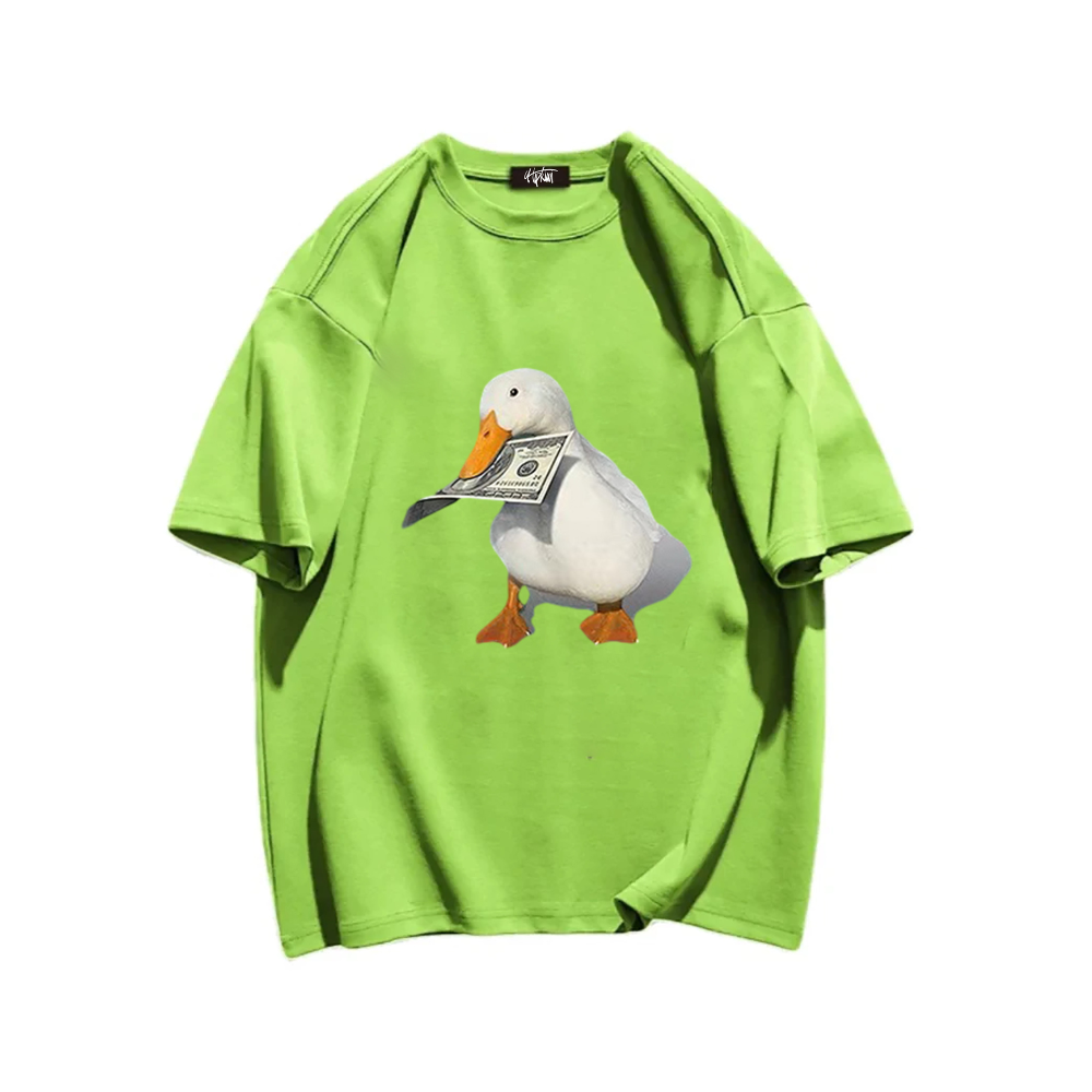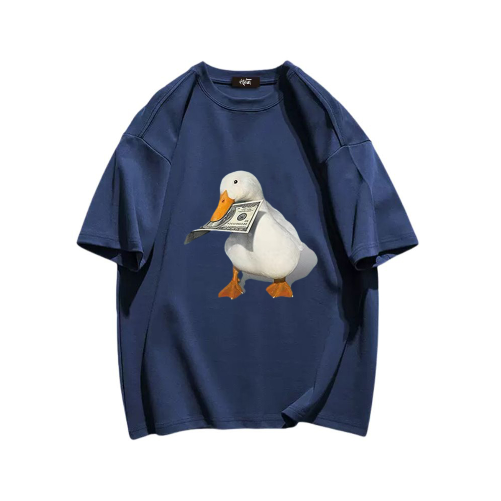Available in a range of sizes, this T-shirt is perfect for both men and women. The vibrant colors and detailed design make it a standout piece that is sure to turn heads. Whether you're heading out for a casual day with friends or want to add a touch of personality to your everyday look, the "Banknote Duck" T-shirt is the perfect choice.