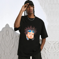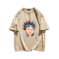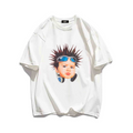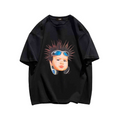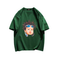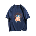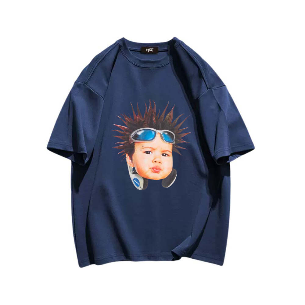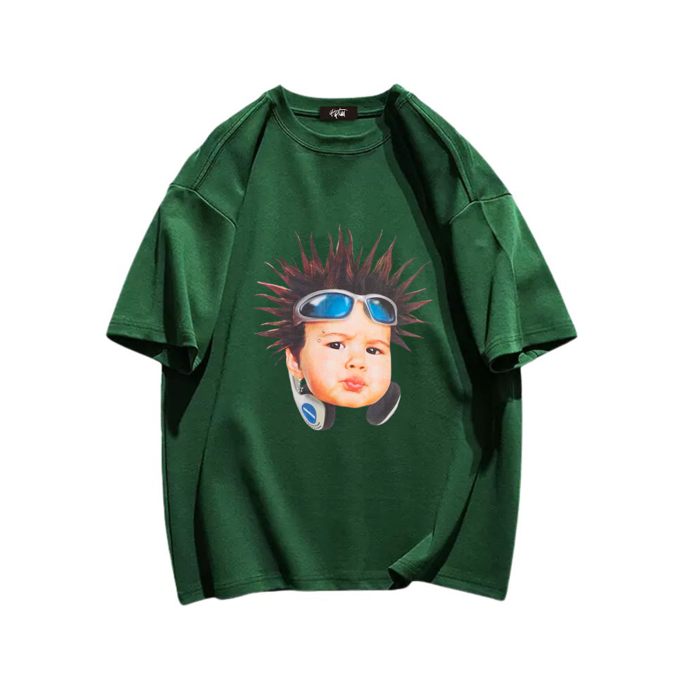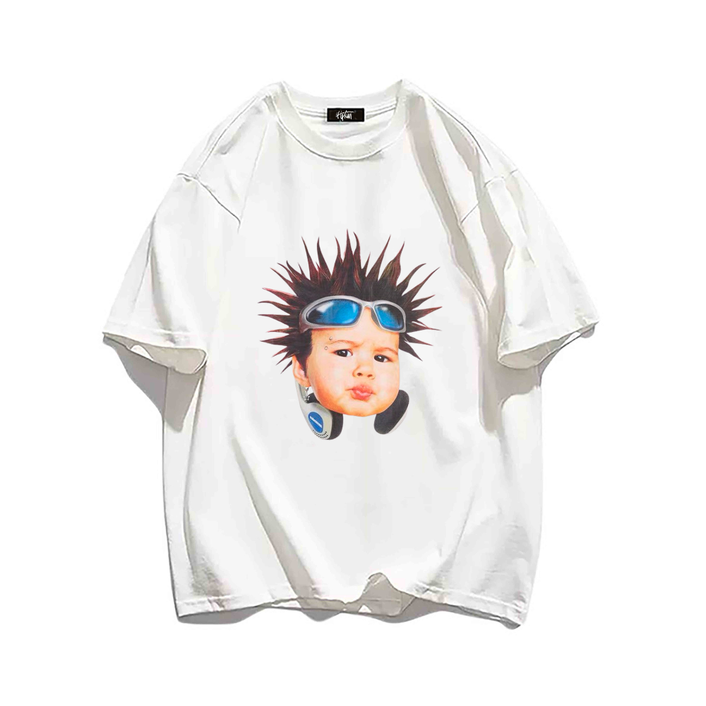 The design features a large sticker graphic of a cool kid with a big head, giving off a playful and fun vibe. The t-shirt is available in a range of sizes to fit kids of all ages. It is also available in multiple color options, allowing your child to choose their favorite.