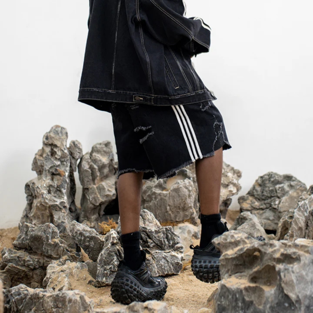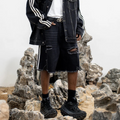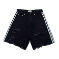 Upgrade your summer wardrobe with our trendy and edgy "Black Ripped Denim" Shorts. Made from high-quality denim material, these shorts are designed to provide both comfort and style. The black color adds a touch of sophistication, while the ripped detailing gives them a cool and edgy look.