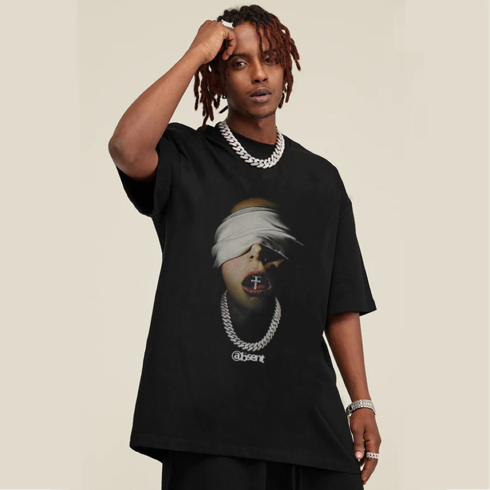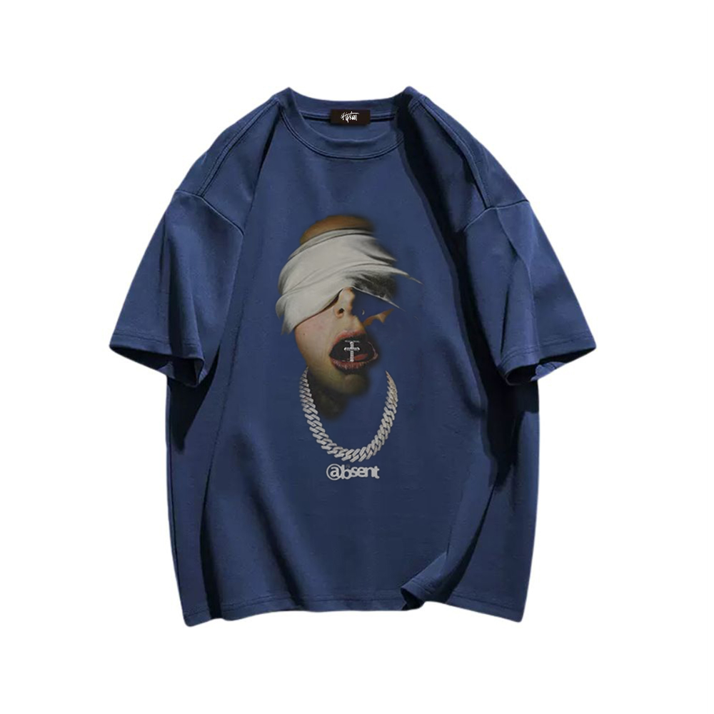 Introducing the "Blindfolded Cross Boy" T-shirt, a unique and eye-catching addition to your wardrobe. This t-shirt features a bold graphic of a blindfolded boy with a cross on his chest, making a powerful statement about faith and perseverance. Made from high-quality materials, this t-shirt is comfortable and durable, perfect for everyday wear.