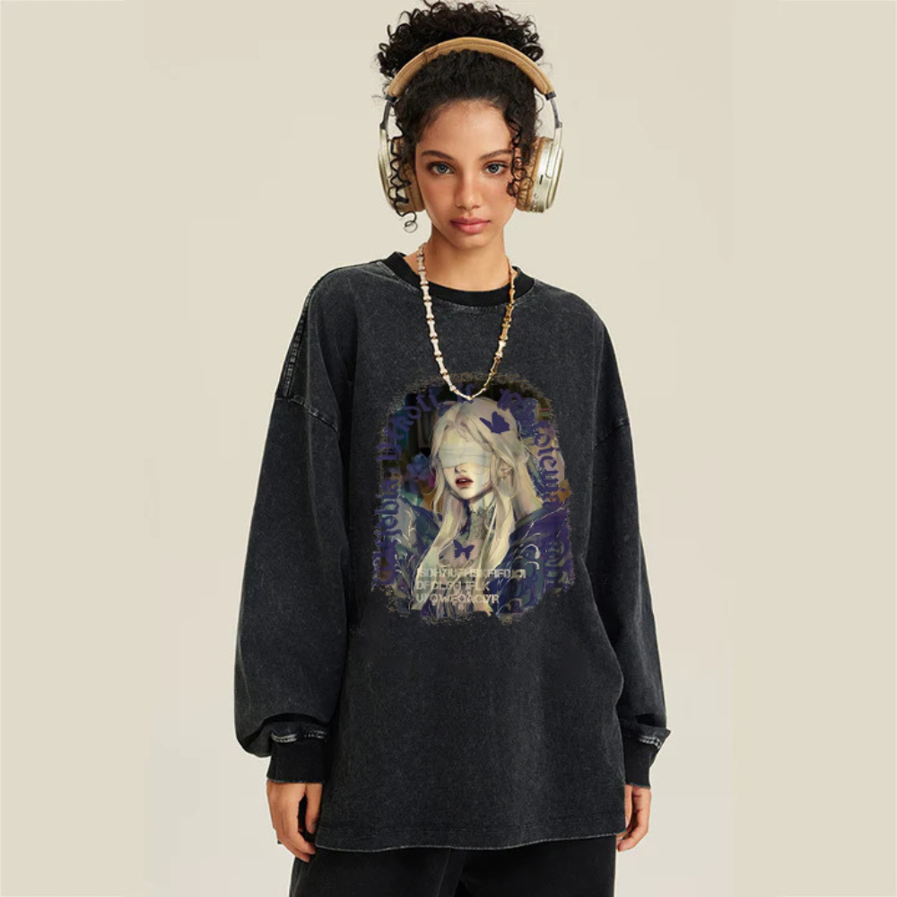 Get ready to make a bold fashion statement with our unique "Blindfolded Girl" sweatshirt. This eye-catching piece is unlike anything you've seen before, with its striking design and comfortable fit.