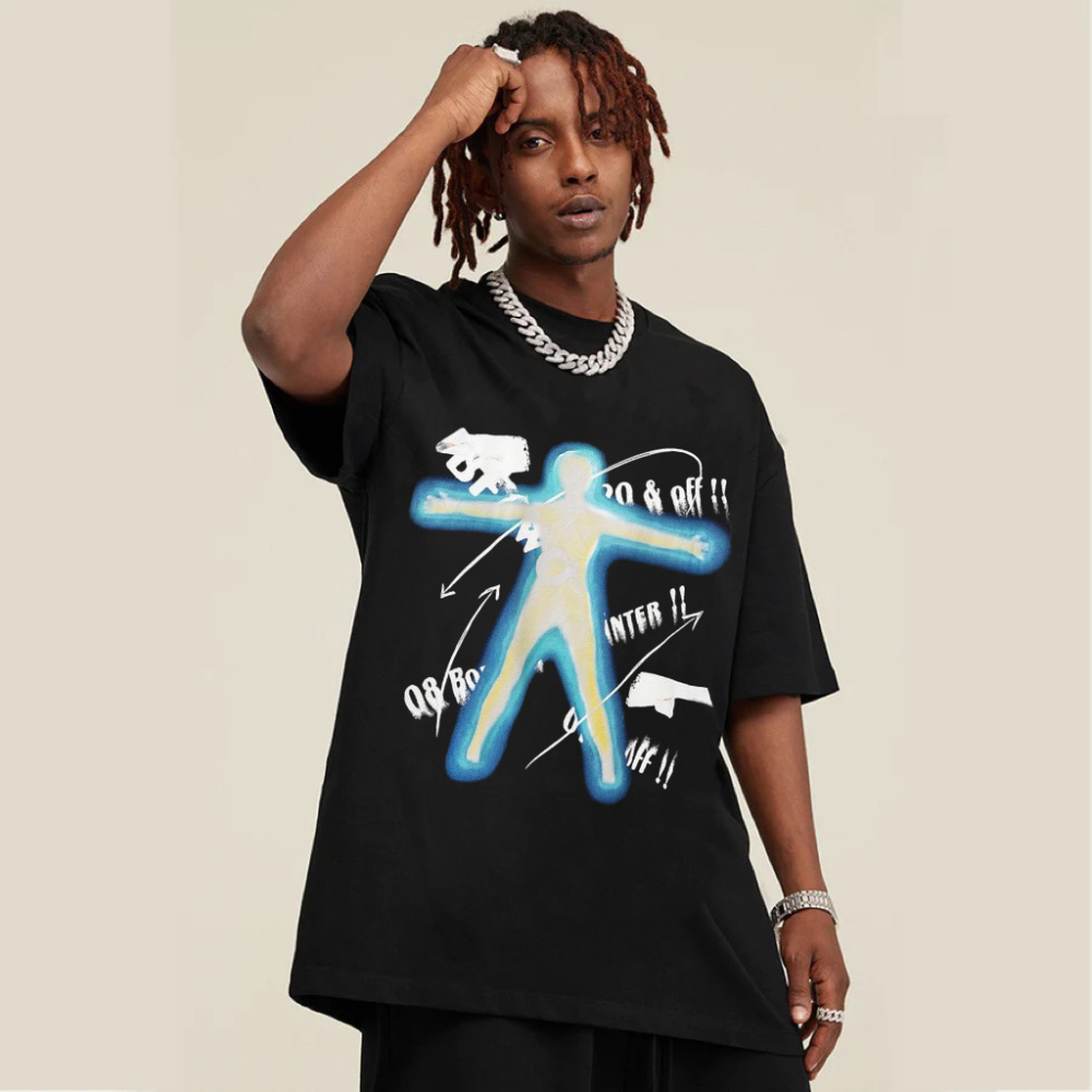 Whether you're heading to a casual brunch or a night out with friends, our "Body Doodle With Blue Border" T-shirt is the perfect choice. It's versatile, comfortable, and effortlessly stylish.