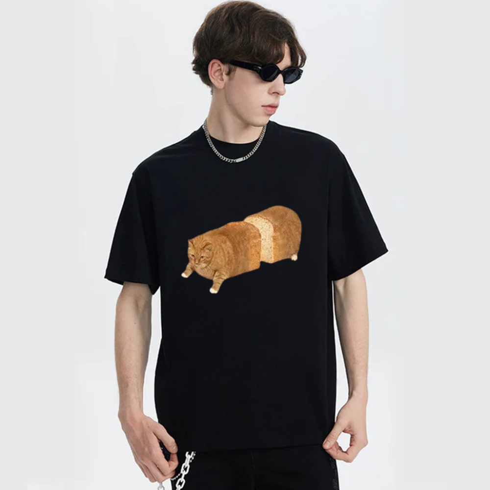 Introducing the purr-fect addition to your wardrobe - the Bread Cat T-shirt! This unique and playful design features a cute cat made entirely out of bread slices, making it a must-have for any cat lover or bread enthusiast.