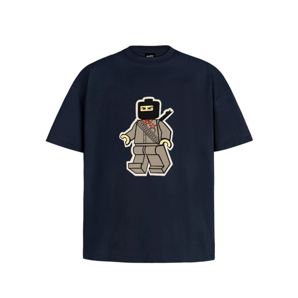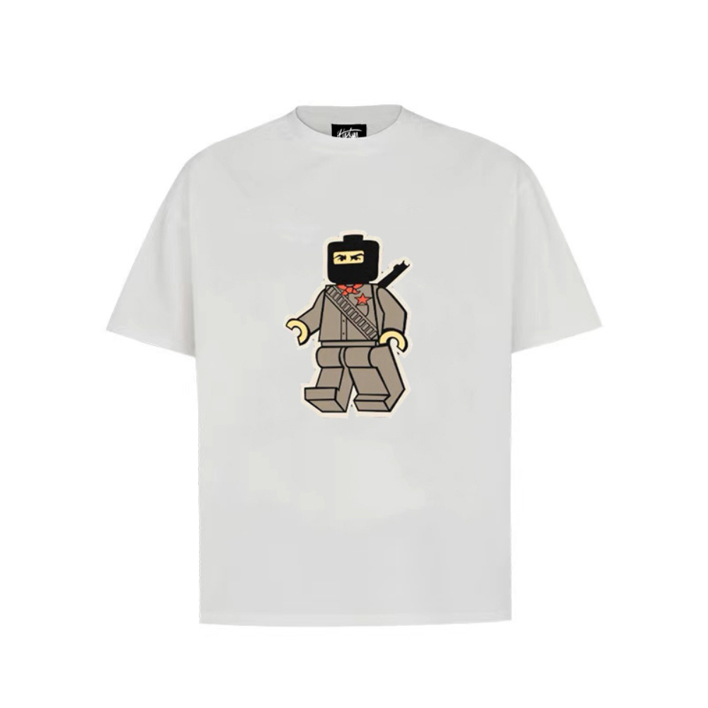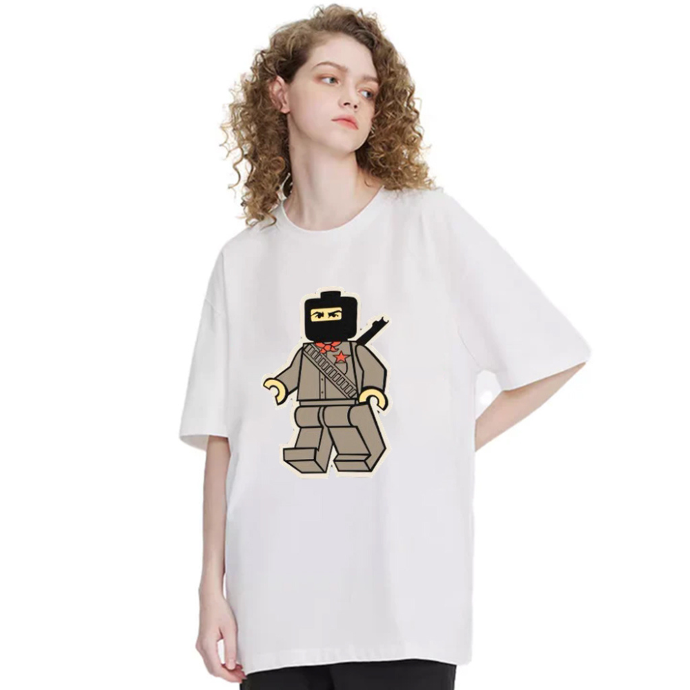 The t-shirt is adorned with a colorful cartoon print of classic building blocks, giving it a fun and playful look. The design is printed using advanced technology, ensuring that the colors stay vibrant and the print stays intact even after multiple washes.