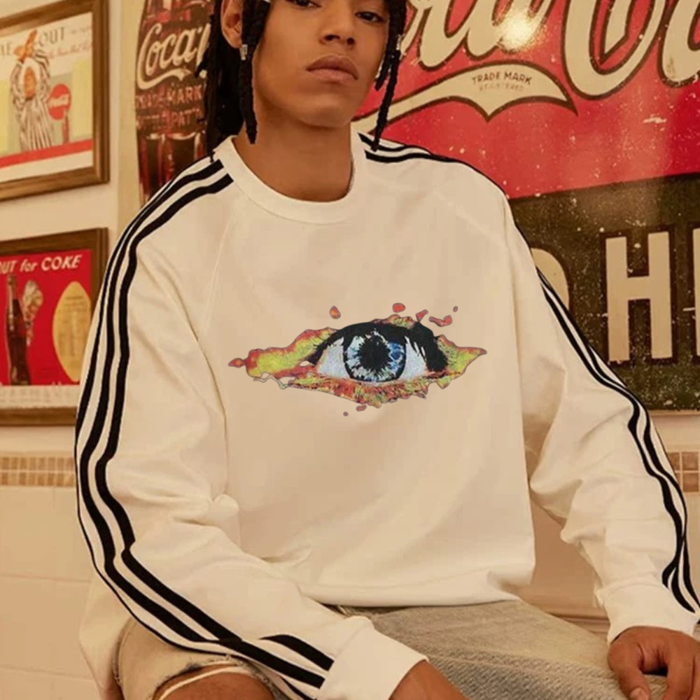 This unique sweatshirt features a trendy pyramid eye print that is sure to make a statement. Made from high-quality materials, this sweatshirt is not only stylish but also comfortable to wear.