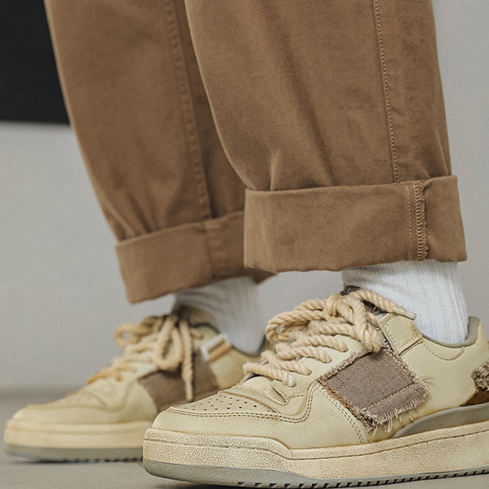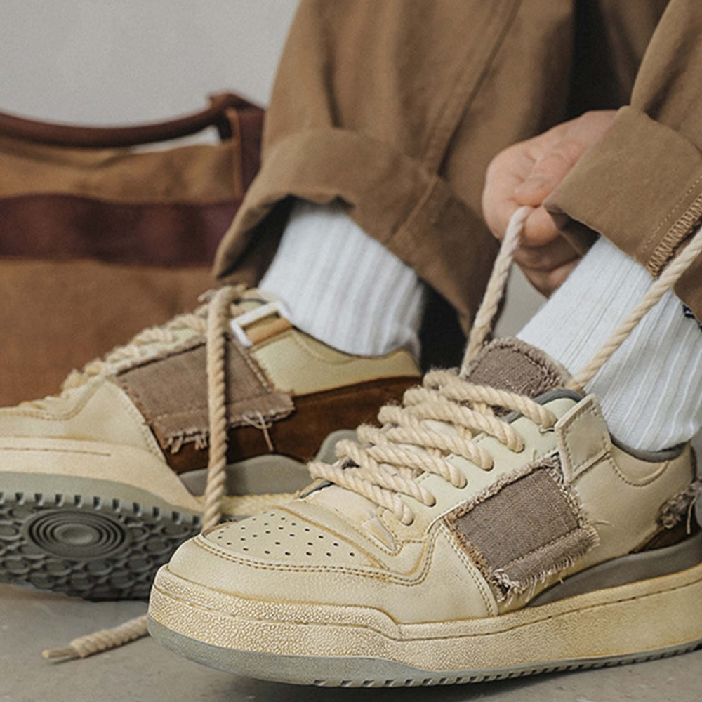 Enhance your wardrobe with the Hipkiwi Milk Tea Element Sneakers. These shoes blend sophistication and style, with a unique twist from the contrasting rolled wheat ear pattern. Crafted for luxury, the attractive and fashionable sneaker will leave you making a statement.
