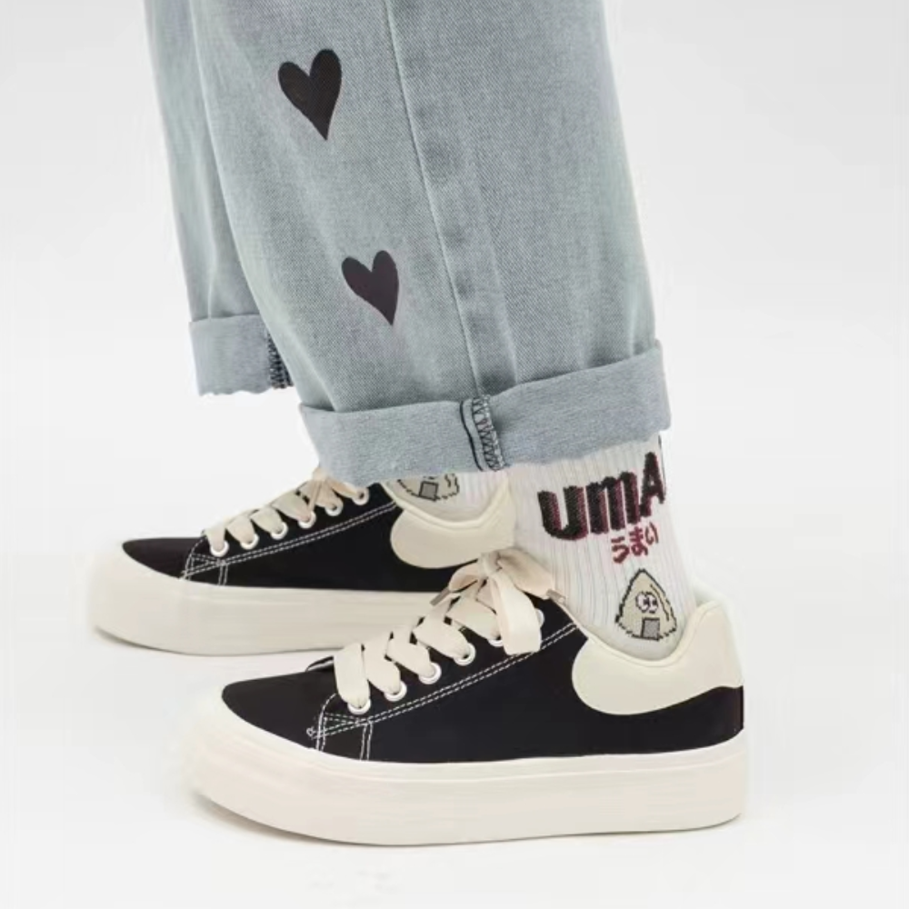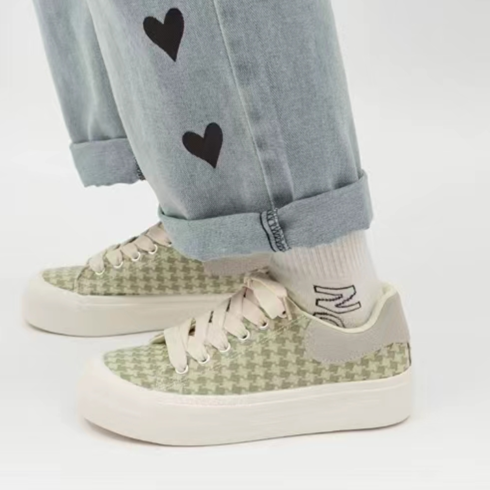 Enhance your wardrobe with the Hipkiwi Urban Heart Block Skateboard Couple Sneakers. These Canvas shoes blend sophistication and style, with a unique twist from the contrasting rolled wheat ear pattern. Crafted for luxury, the attractive and fashionable sneaker will leave you making a statement.