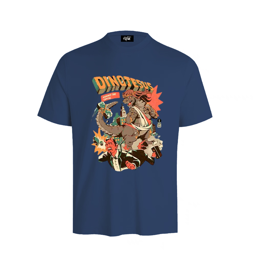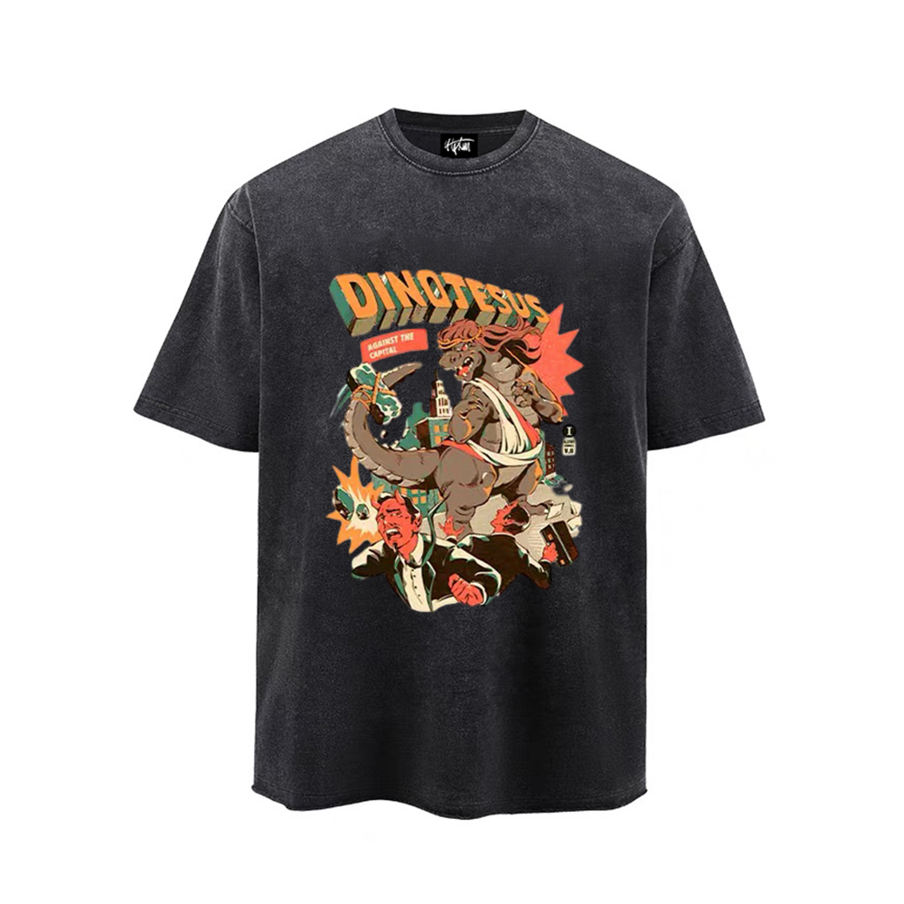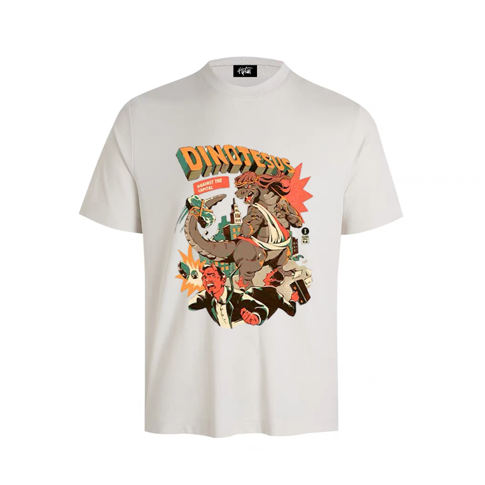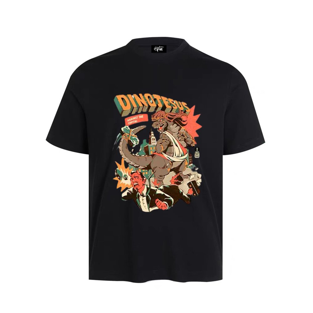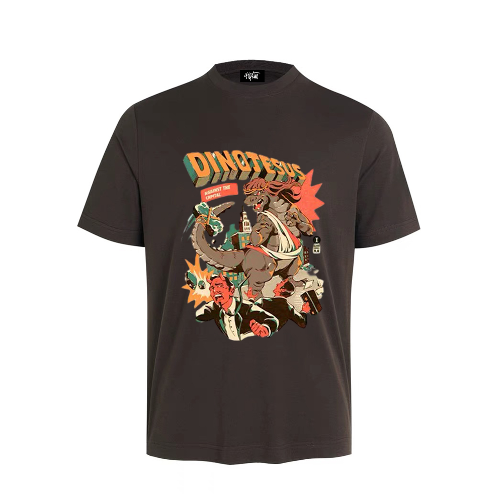 This trendy and eye-catching t-shirt features a unique design of a dinosaur destroying and invading a city, making it a must-have for any fashion-forward individual.