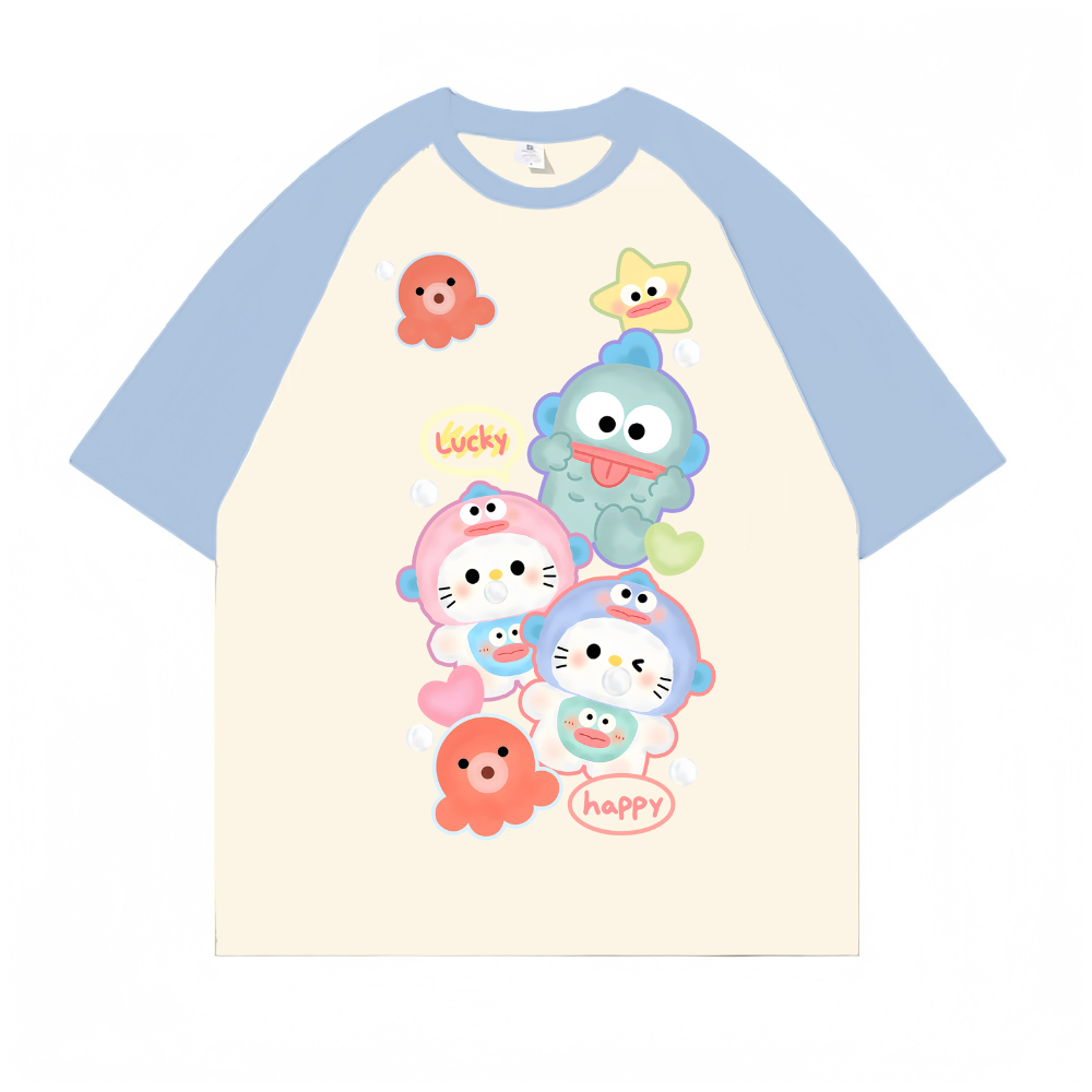Available in a range of sizes, this t-shirt is suitable for women. It's also a great gift idea for anyone who loves fun and quirky fashion. So why wait? Add the Cartoon Many Fish T-shirt to your collection today and make a splash with your style!