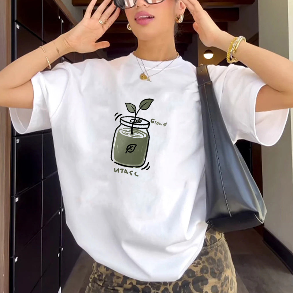 "Casual high street retro cartoon sapling water jug" T-shirt