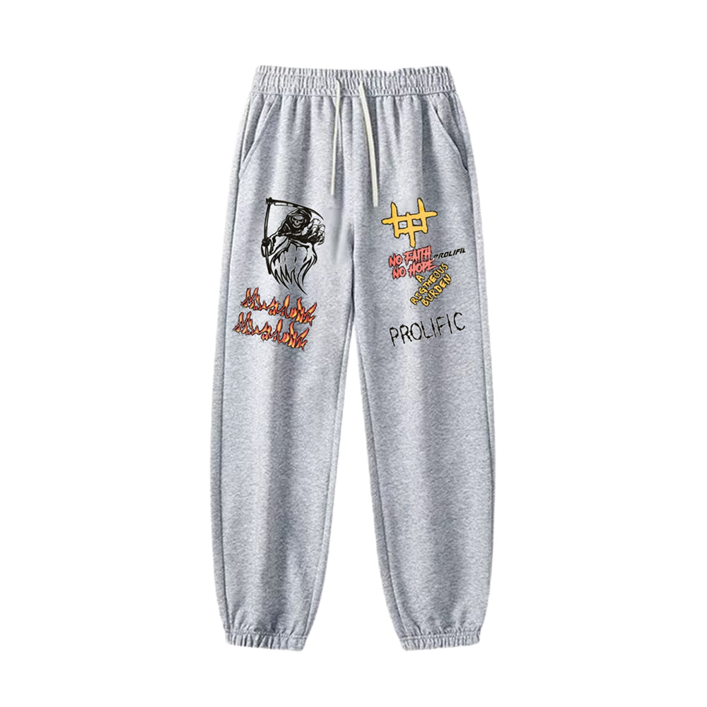 "Casual high street retro grim reaper letter cartoon" Sweatpants