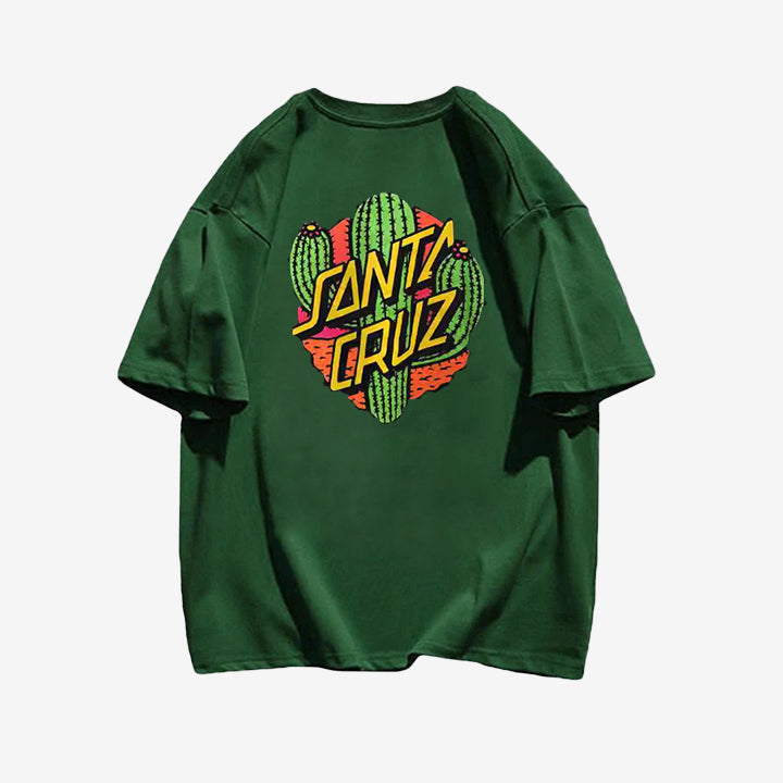 "Casual hip-hop retro high street cartoon cactus" T-shirt