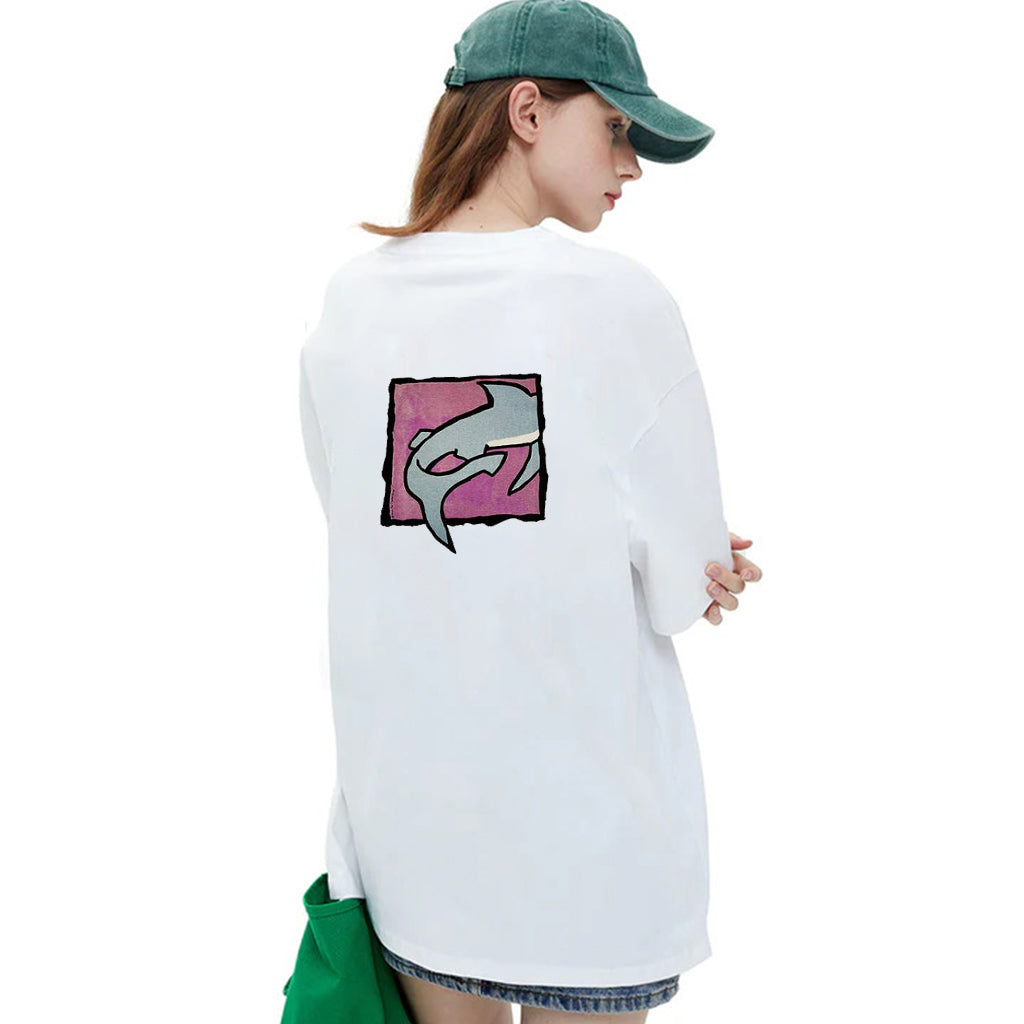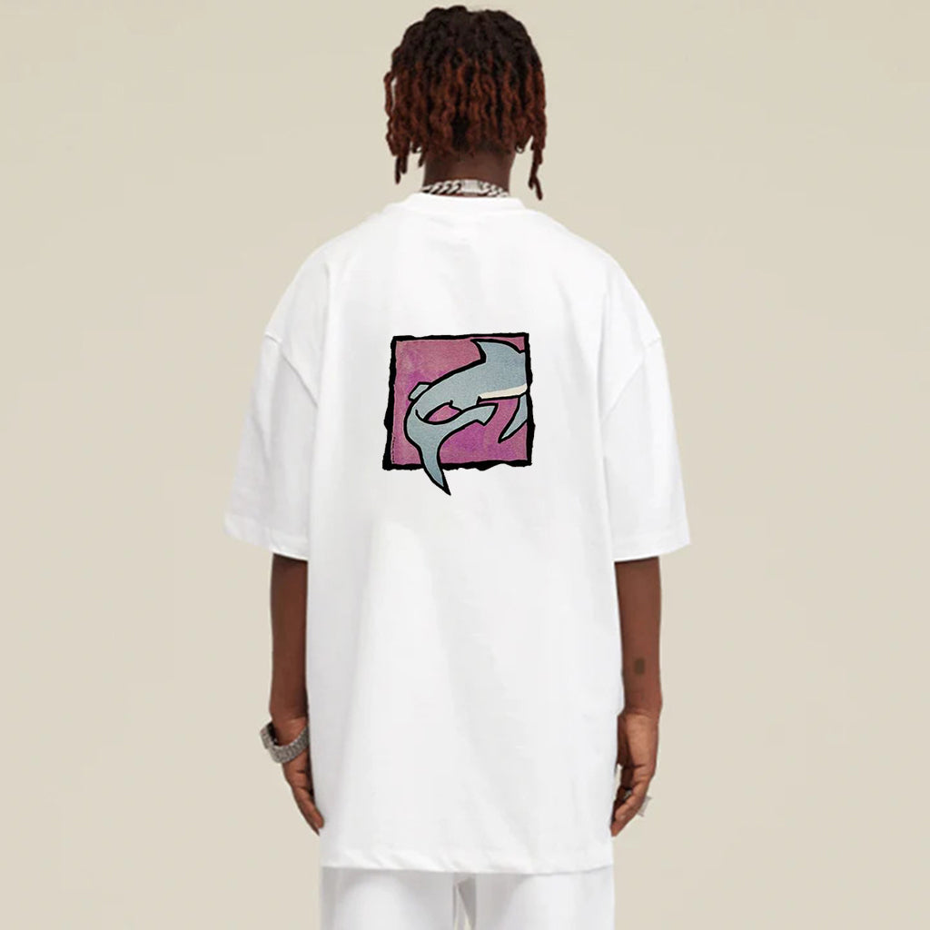"Casual hip hop retro high street cartoon shark poster" T-shirt