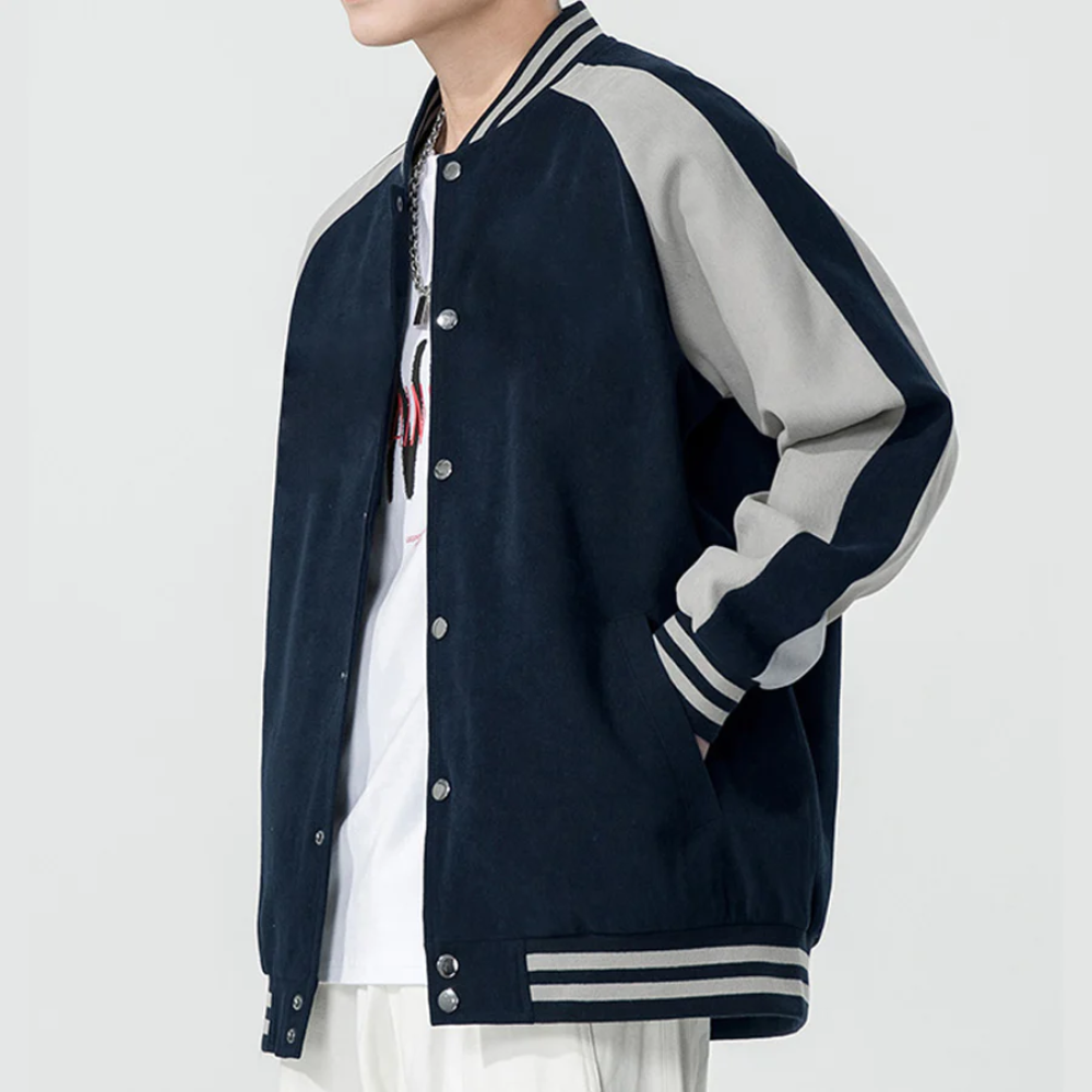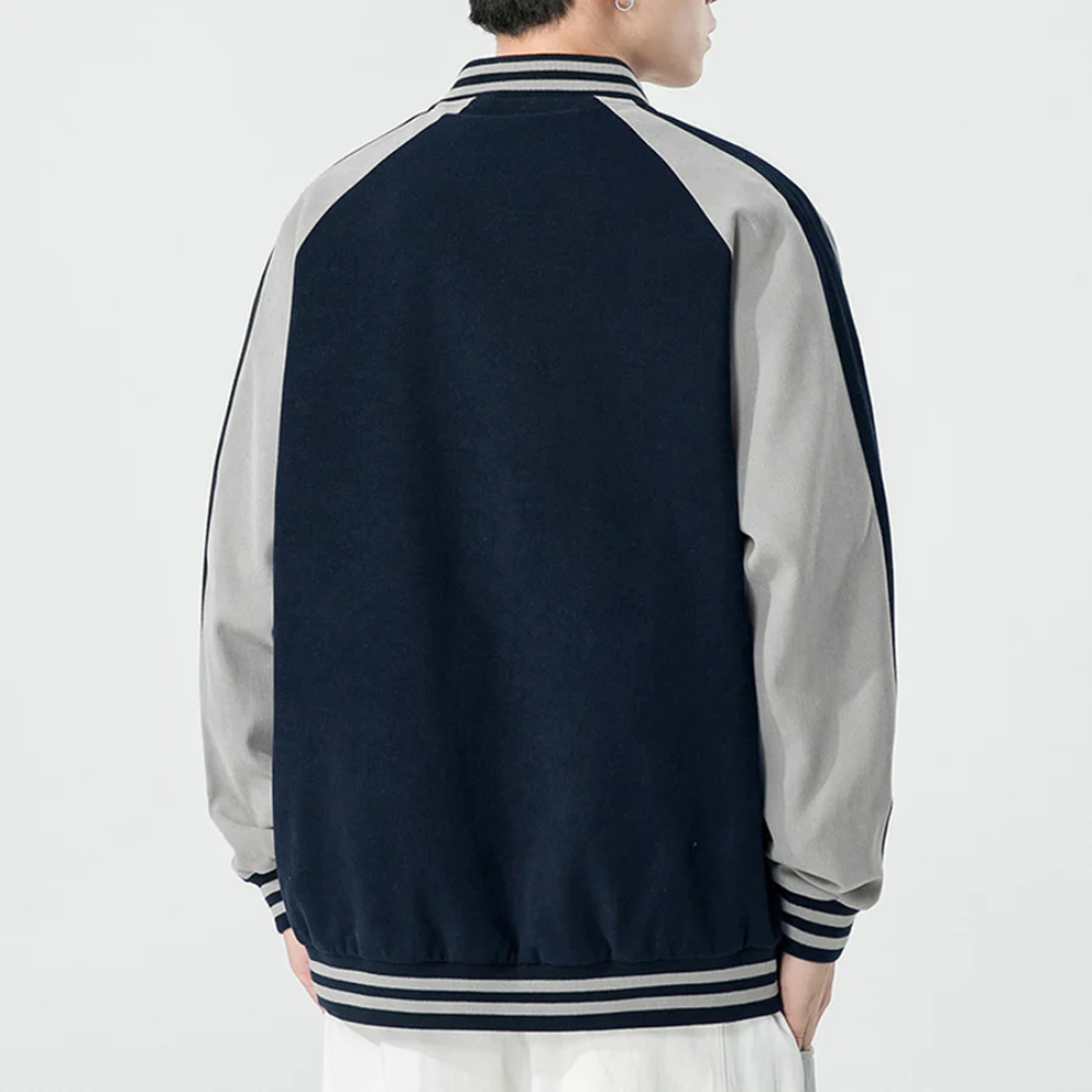 The unique stitching and contrasting colors give this jacket a modern and edgy look, making it stand out from the crowd. The attention to detail in the stitching adds a touch of sophistication to the overall design. The contrasting colors add a pop of color and make this jacket a statement piece.